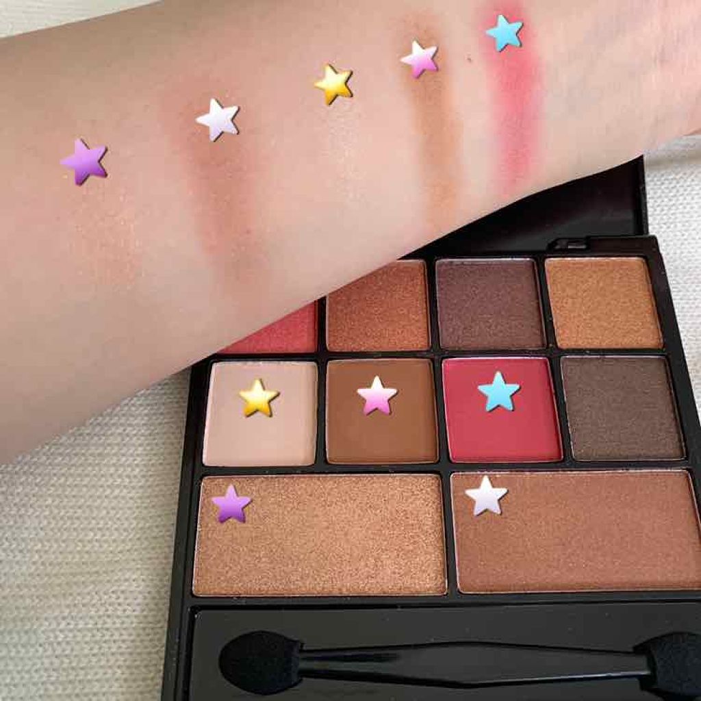 | 9色のアイシャドウパレットとリップティント。ラメ入りやマットまであり、いろいろなメイクが楽しめる! | 詳細を見る | ||
