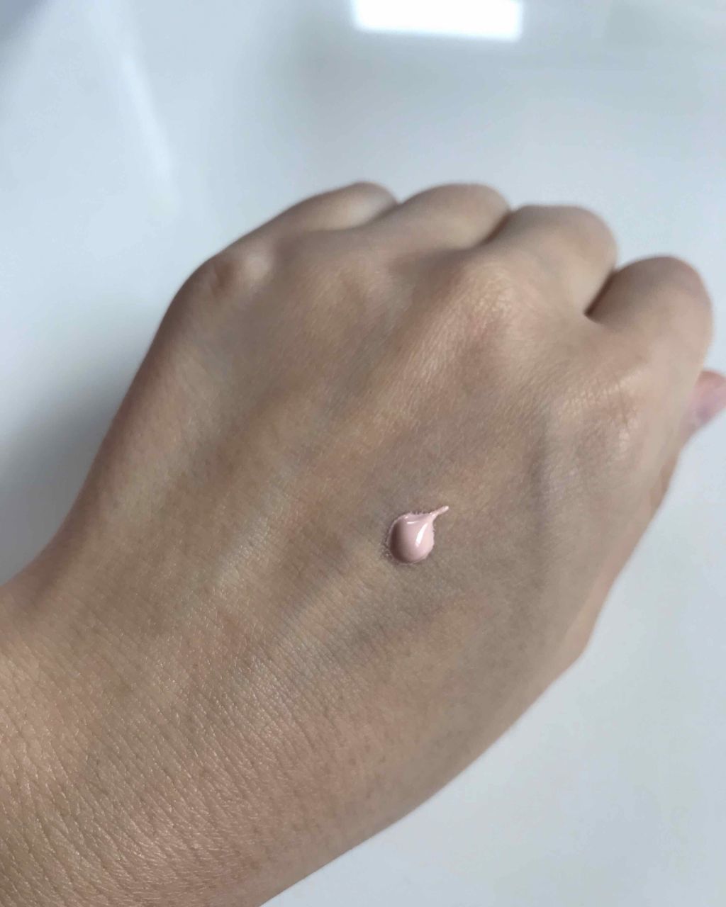 肌の凹凸を埋めてフラットにする効果と、ボンドや水のりのようにピタッと上に乗せるファンデを密着させる効果のあるコチラの下地。 一見瑞々しいテクスチャーですが、手早く広げないとすぐに乾いて滑らなくなるので塗りムラだけ出来ないよう注意が必要☝️⚠️ 私はたるみ毛穴の気になる小鼻や目の下あたりのみで全顔には使わない(1回の使用量がお米1粒程度)ので一生なくならない気がしてます…👶⏩👴