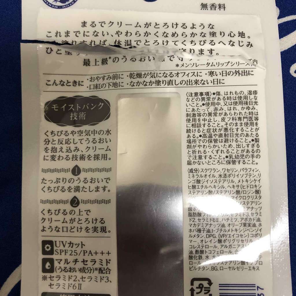 - くちびるや空気中の水分と反応してうるおいを抱え込み、クリームに変わる「モイストバンク技術」を採用。まるでクリームがとろけるような、これまでにない、やわらかくなめらかな塗り心地。ひと塗りすれば、体温でとろけてくちびるへなじみ、最上級*のうるおい感で守ります。 UVカット(SPF25/PA+++)。マルチセラミド(うるおい成分)※配合。*:メンソレータムリップシリーズ内※:セラミド3、セラミド2、セラミド6II