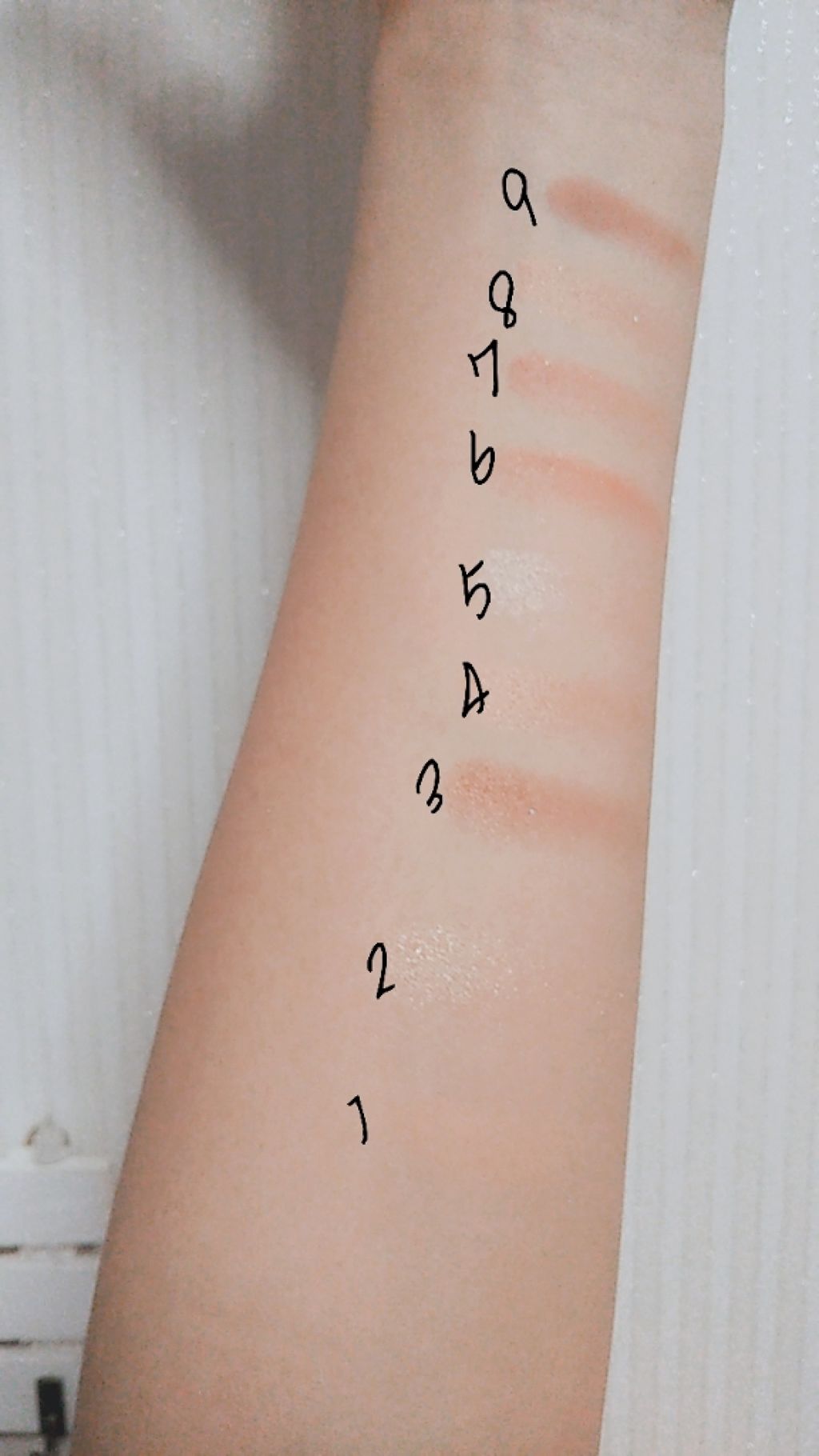 100円とは思えない発色の良さで、ラメが細かいものからグリッターまで色・質感が違うものが入っています イエベ向きの無難なブラウンで使いやすい🙆♀️ 全体的に粉飛び、崩れやすさがあるので、アイシャドウベースを使った方がいいと思います🦖⋆͛