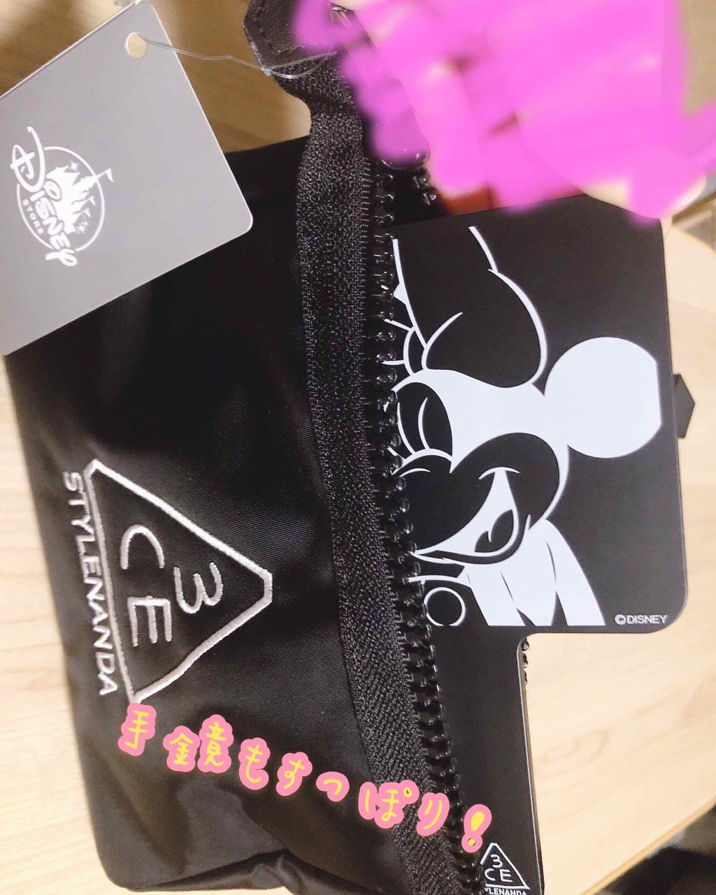 お久しぶりの投稿です!今回紹介する商品は皆さんご存知の方多いと思いますが、ディズニーストアと3CEのコラボ商品が発売されたと聞いてソッコー買いに行ったポーチ、手鏡、口紅です!雑談を入れると、日本の3CEって原宿ぐらいにしかないじゃないですか〜...