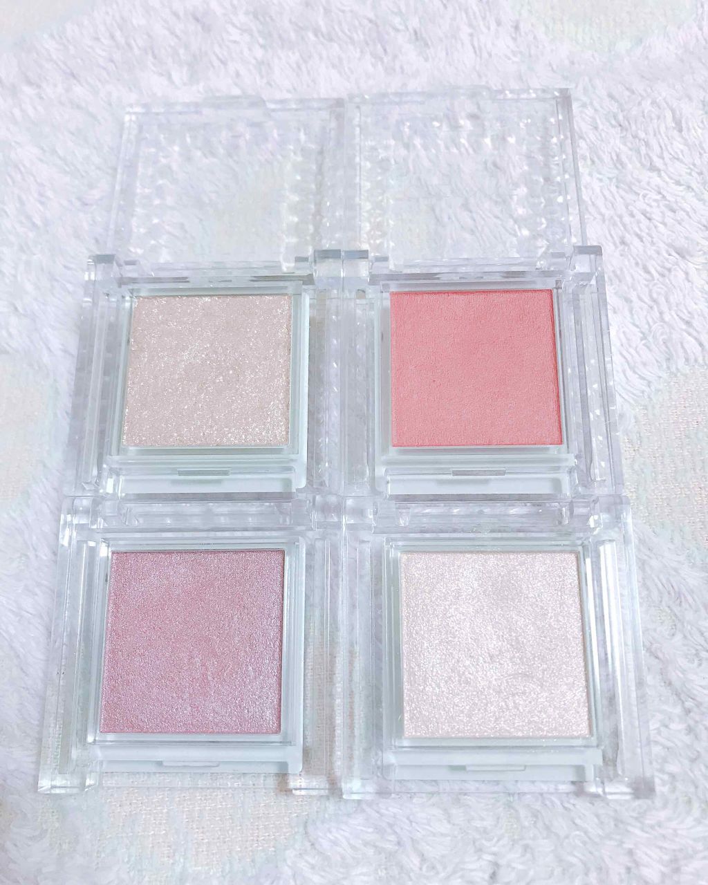 セザンヌシングルカラーアイシャドウ400円(税込)全4色▫️カラー左下01番パールベージュ右下02番ニュアンスピンク右上03番マットレッド左上04番クリアラメラメ感が凄い綺麗で、400円とは思えない高発色▫️01番のカラーはアイホール、涙袋な...