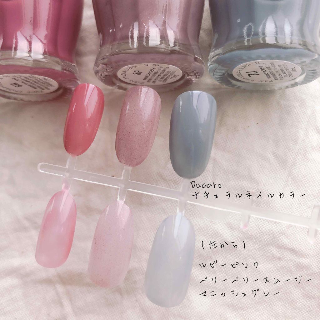 - 季節に関係なく楽しめる使いやすいヌーディーカラーが揃ったネイルカラーです。 デュカート ナチュラルネイルカラー N の色のこだわり ●爪先をナチュラルに、そして 美しく見せる ●1度塗りでシアー、2 度塗りで見たまま 発色。 デュカートのカラーはあえて2 度塗りをすることで艶やかで美しい仕上がりになるよう計算して調色しています。 その日の気分や時間によって、1 度塗り、 2 度塗りそれぞれの仕上がりを楽しむことも。 日本人の肌色にあった絶妙なくすみ加減で、あなたにぴったりのカラーがきっと見つかります。