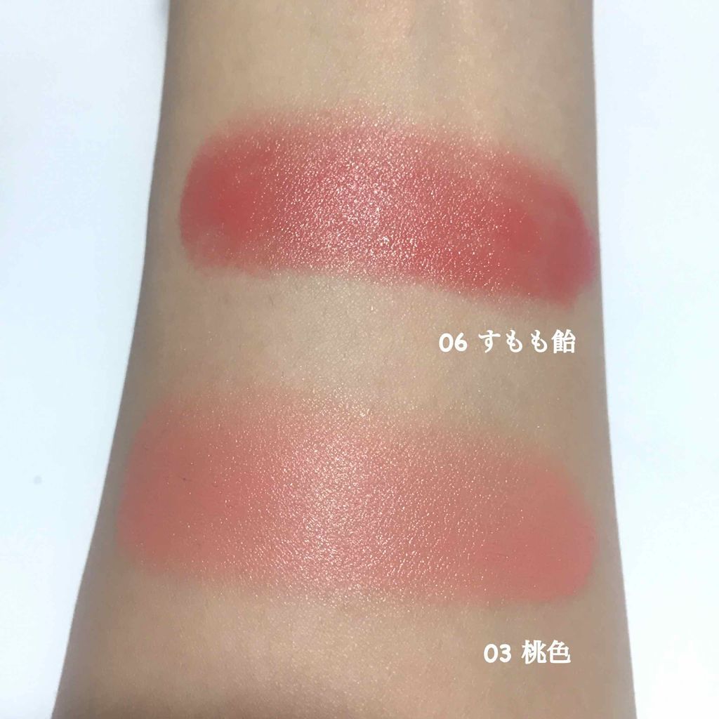 硬めのテクスチャーでムラなく伸ばすのに時間がかかる。04青みのある赤ピンク。濃いめのビビッドカラーなので浮く上手い使い方を考えたい06コーラルピンク...