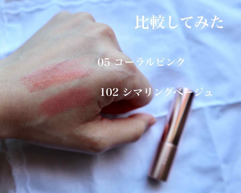 多幸感あふれるクリアなコーラル🩷 特に時間が経つと蛍光感がでてきちゃう。 THEピンクのリップを求めている人にピッタリ! ティッシュオフしても若干色は残ってる! おすすめの塗り方は、いつもよりも少し濃いめに塗ってから、ティッシュオフ!