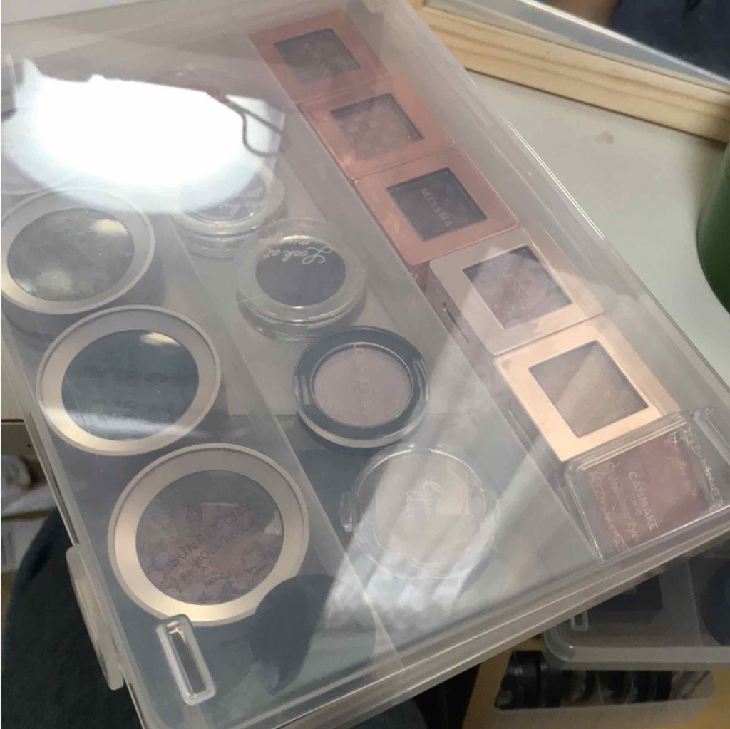 葉っぱちゃーん(*´︶`*)❤︎ いやん、今頃気がついたよ。 今日はメイクないのかな?て思ってた😅 クリアケース沢山100均にあるから有難いよね。 これだと薄いから重ねれそう。 コスメ自体を重ねると見えないもん(-ω-;)