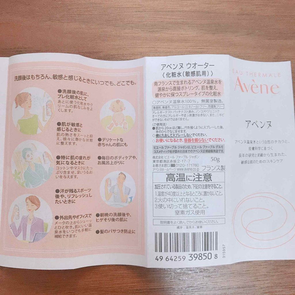 私はお風呂あがりにすぐスプレーして化粧水を塗るまで肌が乾燥しないようにしてます👌🏻 ちなみにメイク直しはアベンヌウォーター → ティッシュオフ →パウダー → 日焼け止めスプレーの順番で使ってます🙌🏻 暑い日にスプレーすると ひんやりして気持ちよかった🙆🏻♀️✨