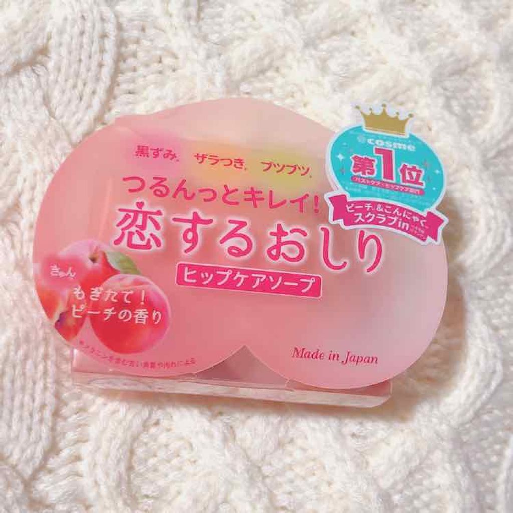 - 恋するおしり ヒップケアソープ おしりの黒ずみ・ザラつき・ブツブツにくるくる直接洗いの簡単ケア! (1)余分な古い角質を落とす:角質ケア スクラブ※1&ピーリング成分※2配合 【モモ核、マンナン※1 グルコノバクター/ハチミツ発酵液、 リンゴ酸・乳酸・クエン酸※2】 (2)必要なうるおいを守る:保湿ケア 6種※3の美容保湿エッセンスを配合 【モモ葉エキス、モモ種子エキス、ビワ葉エキス、キウイエキス、 アーチチョーク葉エキス、アロエベラ液汁※3】 ◎「きゅんっ」とする もぎたて!ピーチの香り