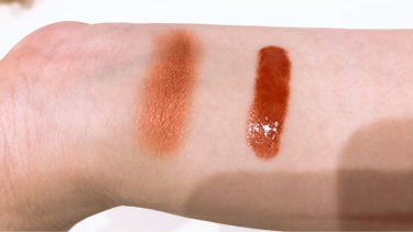 すっごく可愛い組み合わせ見つけてしまいました💓☺️✨SUQQUのモイスチャーリッチリップスティックの12金銀杏と、セザンヌのラスティンググロスリップ101の組み合わせ😍♥️スウォッチはフィルターなしです🧚♀️どちらも単体で使っても可愛いけど...