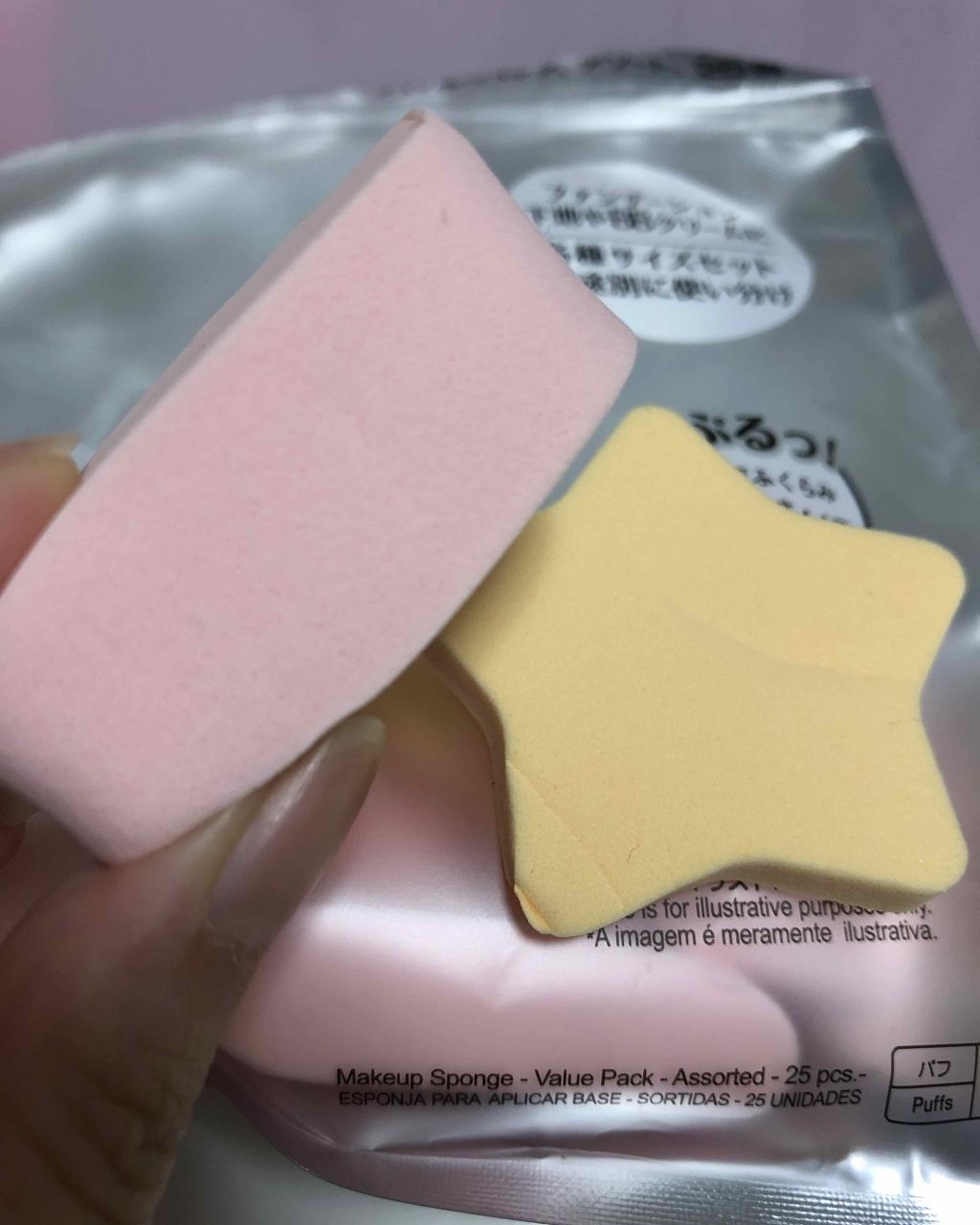 こちらのダイソーのメイクスポンジの使い方でパワーが発揮させられるのは、私がよく使うテクスチャーが硬め・密着力の高いファンデやコンシーラーを伸ばしたり叩き込んだりする時◎ 水ありで使うことで必要以上のファンデを吸い込まない感じ☝️ ちょっぴり大きめなので、安定して握れるのも使いやすいポイントの1つ◎