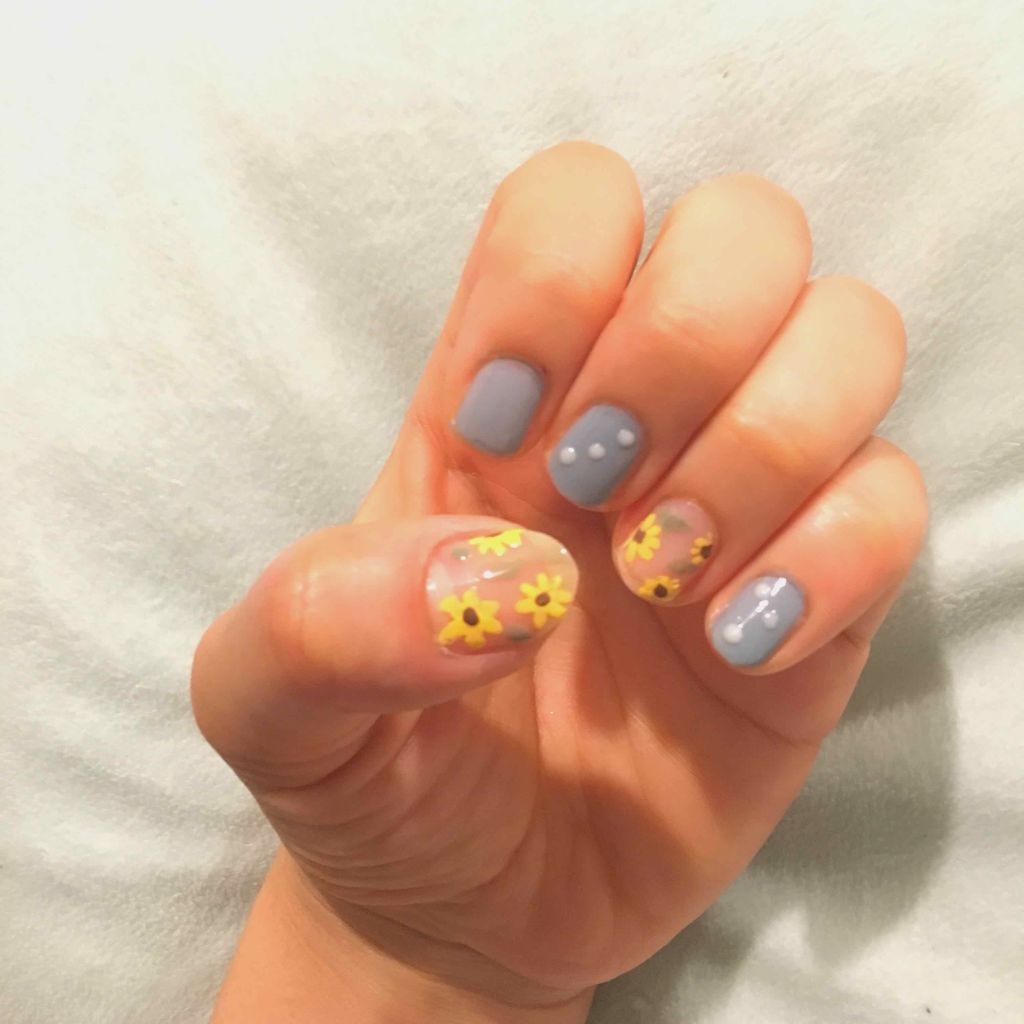 #ボタニカルネイル#カラフルネイルズ#初夏ネイル#水玉ネイル#セルフネイル#ネイルデザイン親指のボタニカルはなかなか外せずそれを活かしたネイルにしてみました!カーキと水色の組み合わせで初夏っぽく…水玉すごくがんばった!!...