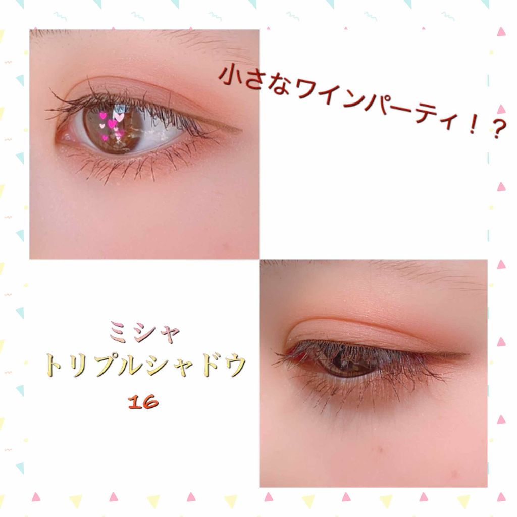 【速攻グラデ♡プチプラ3色ローズ】MISSHAトリプルシャドウNo.16ローズフォンデュ参考価格836円(税込)シマーなキラメキの濃淡3色を順番に配置したアイシャドウ♪これ、幅がめちゃんこ狭くて単色では取りにくいんだけど指で取れば2色一気に塗...