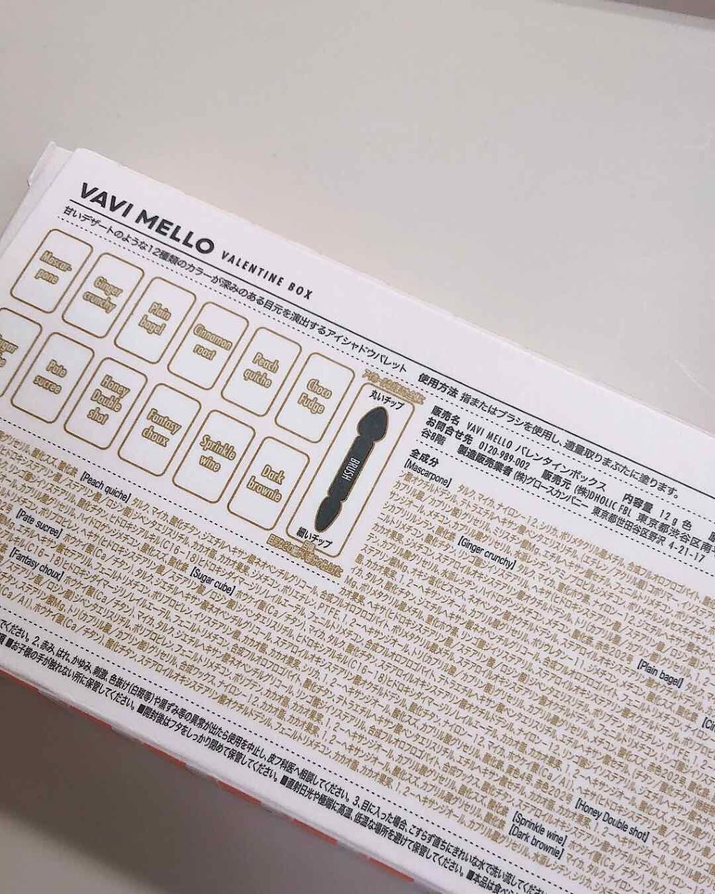 こんにちは!あーたんです!今回紹介するのはVAVIMELLOのバレンタインボックスです!商品説明「1秒ひと塗りまぶた」を実現する高発色アイシャドウパレットです。マスカルポーネ、ジンジャークランチ、チョコファッジなど、デザートをイメージした12...