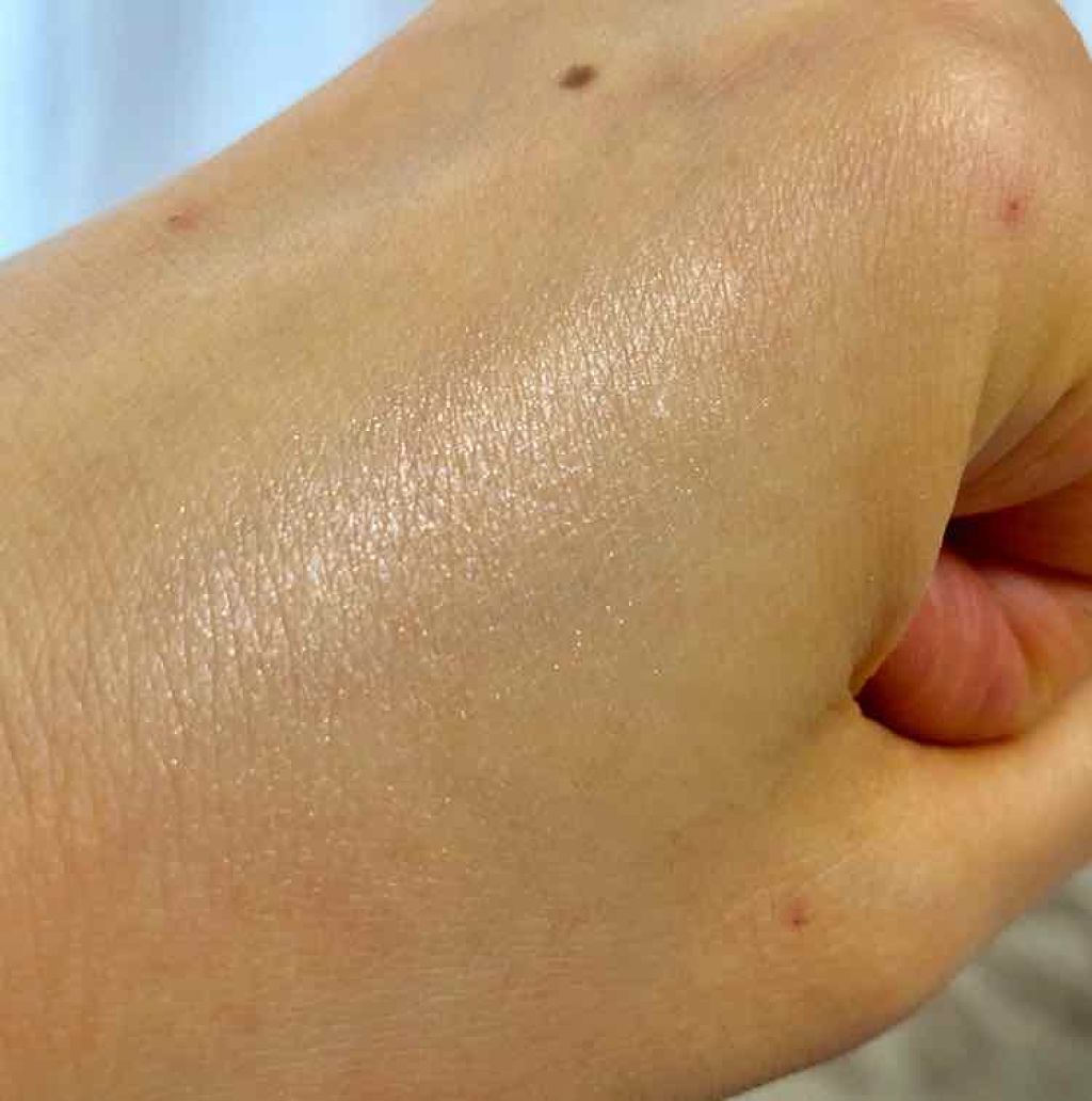 キラキラ感が少し強いですが肌馴染みの良いベージュ系のカラーでめっちゃかわいいです! ただ少しキラキラ感が強いので多少派手に見えてしまいます! ツヤ感がとっても綺麗でラメ感も無いので普段から使いやすいと思います! ただ塗りすぎると少し白っぽく浮いて見えるので付けすぎには注意です! 二つ持ってて良かったなと思っていますが、まじで減らないです!!! 少し金額が高く感じますが本当に全然減らないのでコスパはいいと思っています!笑