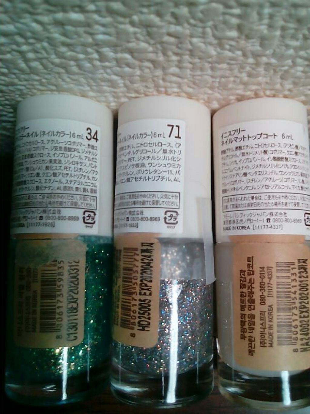 - 成分 [1]酢酸ブチル、酢酸エチル、ニトロセルロース、アジピン酸/ネオペンチルグリコール/無水トリメリット酸共重合体、クエン酸アセチルトリブチル、イソプロピルアルコール、アクリレート共重合体、ステアラルコニウムベントナイト、ブチルアルコール、シリカ、オクトクリレン、二酸化チタン(CI 77891)、スチレン/アクリレート共重合体、ポリビニルブチル、ジベンゾエートトリメチルペンタンジル、黄色203、水酸化アルミニウム、メチコン、赤201、カルシウムパントテ テネイト、カプリル酸/カプリン酸トリグリセリド、アルガン核油 [2]酢酸ブチル、酢酸エチル、ニトロセルロース、クエン酸アセチルトリブチル、アジピン酸/ネオペンチルグリコール/無水トリメリット酸共重合体、イソプロピルアルコール、二酸化チタン(CI 77891)、 アクリレート共重合体、ステアラルコニウムベントナイト、スチレン/アクリレート共重合体、 ブチルアルコール、 オクトクリレン、 シリカ、 赤色201、赤色酸化鉄、 黄色4、 ポリビニルブチル、 ジベンゾエートトリメチルペンタンジイル、 エチルセルロース、 ステアラルコニウムヘクトライト、 カーボンブラック、 パントテン酸カルシウム、 トリグリセリル/カプリン酸、 アルガン核油 、 [4]酢酸ブチル、 酢酸エチル、 ニトロセルロース、 アジピン酸/ネオペンチルグリコール/無水トリメリット酸塩共重合体、 クエン酸アセチルトリブチル、 イソプロピルアルコール、 アクリレート共重合体、 スチレン。 /アクリレーツ共重合体、酢酸ショ糖イソ酪酸塩、ステアラルコニウムベントナイト、シリカジメチルシリル酸塩、ジプロピレングリコールジベンゾエート、二酸化チタン(CI 77891)、オクトクリレン、黄色4、ポリビニルブチル、クエン酸、赤色201、赤色202、ジメチコン、アルガン核油、タンジェリン油、ブチルアルコール、トリメチルシロキシケイ酸塩、パントテン酸 カルシウム[11] 酢酸ブチル、酢酸エチル、ニトロセルロース、クエン酸トリブチル、アジピン酸/ネオペンチルグリコール/無水トリメリット酸共重合体、イソプロピルアルコール、赤色201、アクリレーツ共重合体、スチレン/アクリレーツ共重合体、ステアラルコニウムベントナイト、二酸化チタン(CI 77891)、黄色203、ブチルアルコール、シリカ、オクトクリレン、ポリビニルブチル、ジベンゾエートトリメチルペンタンジイル、カルシウムパン トテン酸、 トリグリセリル/カプリン酸、 アルガン核油 [14]酢酸ブチル、酢酸エチル、ニトロセルロース、 アジチウム酸/ネオペンチルグリコール/無水トリメリット酸共重合体、 クエン酸アセチルトリブチル、 イソプロピルアルコール、 アクリレート共重合体、 スチレン/アクリレート共重合体、 ショ糖酢酸イソ酪酸、 ステアラルコニウムベントナイト、 シリカジメチルシリル酸、 ジプロピレングリコールジベンゾエート、 黄色4、 二酸化チタン(CI 77891)、オクトクリレン、ポリビニルブチルアラル、クエン酸、ジメチコン、アルガン核油、橙油、ブチルアルコール、トリメチルシロキシケイ酸、パントテン酸カルシウム[16]酢酸ブチル、酢酸エチル、ニトロセルロース、アジピン酸/ネオペンチルグリコール/無水トリメリット酸共重合体、イソプロピルアルコール、クエン酸アセチルトリブチル、アクリレーツ共重合体、 チレン/アクリレート共重合体、 スクロースアセテートイソブチレート、 ステアラルコニウムベントナイト、 シリカジメチルシリル酸、 ジプロピレングリコールジベンゾエート、 イエロー4、 オクトクリレン、 二酸化チタン(CI 77891)、 エチルセルロース、 ブルー404、 ポリビニルブチル、 クエン酸、 ジメチコン、 アルガン核油、 タンジェリン油、 ブチルアルコール、 トリメチルシロキシケイ酸塩、 パントテン酸 カルシウム。[18]酢酸ブチル、酢酸エチル、ニトロセルロース、アジピン酸/ネオペンチルグリコール/無水トリメリット酸共重合体、ポリエチレンテレフタレート、シリカジメチルシリル酸塩、イソプロピルアルコール、スチレン/アクリレート共重合体、アクリレート共重合体、ジベンゾエートジプロピレングリコール、ジイソ酪酸トリメチルフェンタニルジイソ酪酸、ホウケイ酸ナトリウムカルシウム、イソブチルフェノキシエポキシ樹脂、オクトクリレン、二酸化チタン(CI 77891)、赤202、 ポリウレタン-11、 アルガン核油、 タンジェリン油、 酸化スズ、 パントテン酸カルシウム [21]酢酸ブチル、 酢酸エチル、 ニトロセルロース、 クエン酸アセチルトリブチル、 アジピン酸/ネオペンチルグリコール/無水トリメリット酸 共重合体、 イソプロピルアルコール、 二酸化チタン(CI 77891)、 アクリレート共重合体、 スチレン/アクリレート共重合体、 ステアラルコニウムベントナイト、 ブチルアルコール、 シリカ、 オクトクリレン、 ポリビニルブチラール、トリメチルペンタンジイルジベンゾエート、 パントテン酸カルシウム、 トリグリセリル酸カ