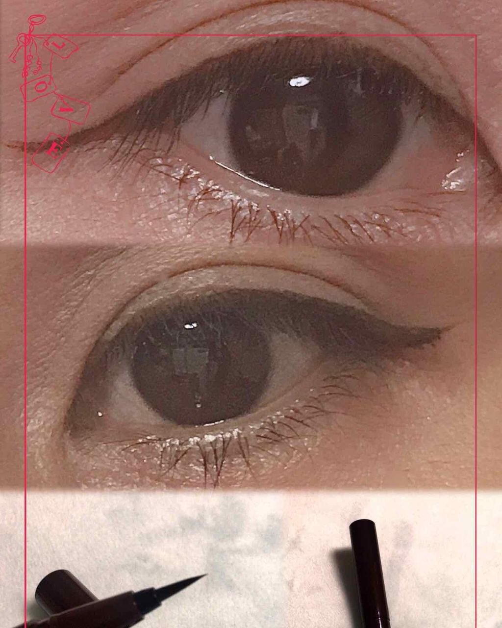 1日中落ちない※抜群の耐久性 密着リキッドアイライナーなめらかな描き心地でかすれにくい高発色で目尻まで美しい。 コシのある極細筆で、細いラインも太いラインも自由自在。肌にビタッと密着選定性に優れた、こすれに強くにじみにくい特殊ポリマー配合描きたてのラインを長時間キープ 美容液成分配合で0.1㎜の極細なのもありがたい、カラーも絶妙で、ブラックでは強いけど、ブラウンだと色味が弱いなーって人におすすめ👍