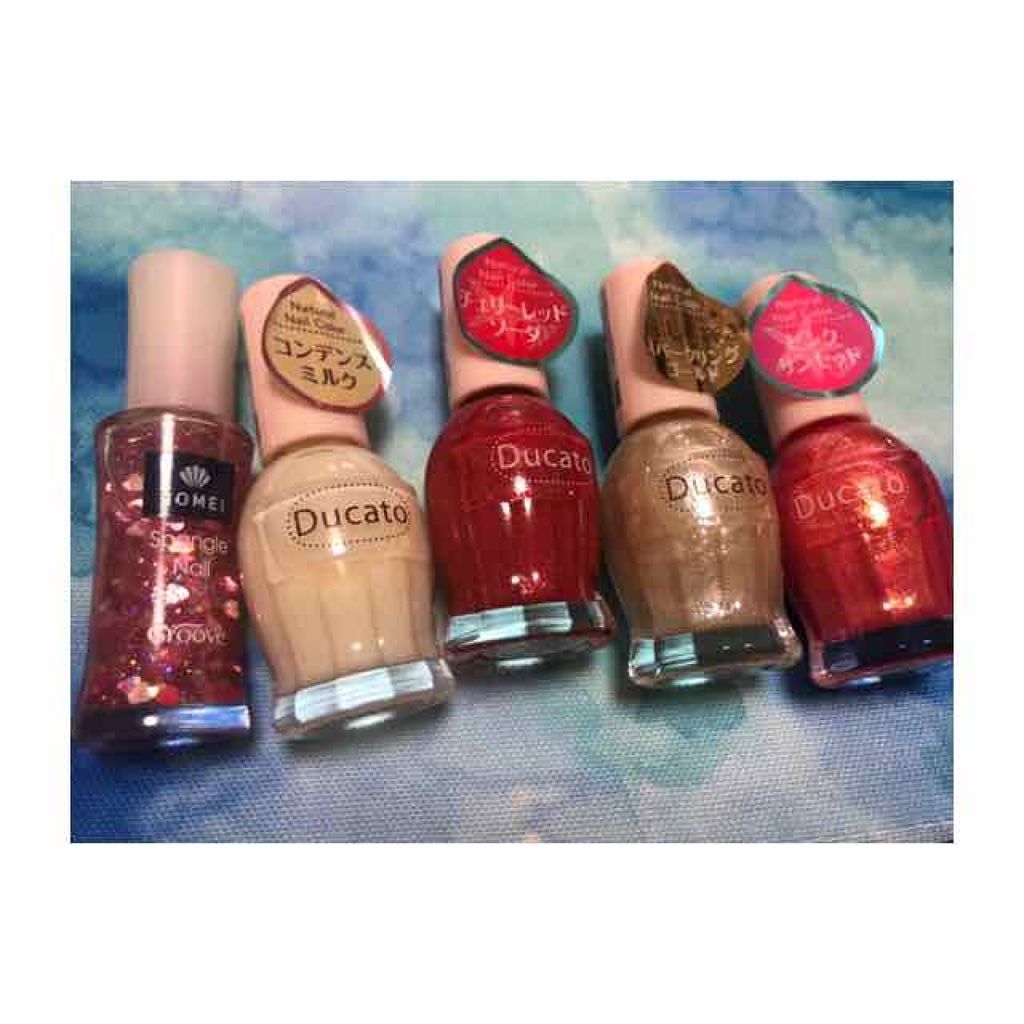 #デュカートで🍧かき氷ネイル🍧限定の105と、一番人気の55で練乳いちご🍓🍼みたいなネイルをしました💕*⑅︎୨୧┈︎┈︎┈︎┈︎୨୧⑅︎*【使用したポリッシュ】DucatoナチュラルネイルN各600円(税抜)55コンデンスミルク105チェリー...