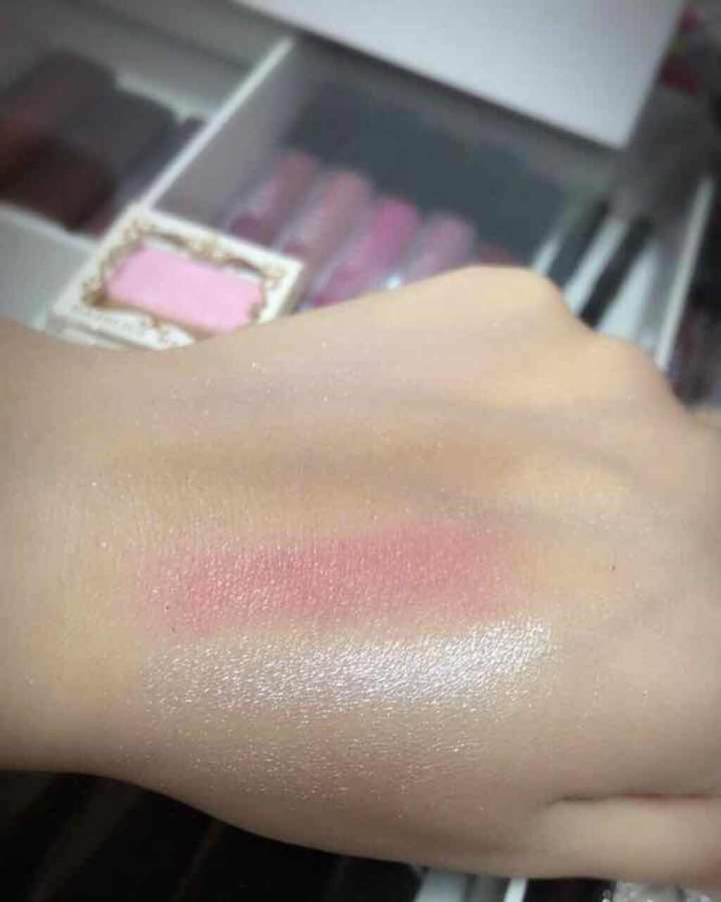 見た目もワインで可愛いし匂いもかなり好きな匂いです。付けてる感もそこまでなくとにかく落ちない。付けてすぐにティッシュ、メイク落としで強めにゴシゴシしたのですが落ちません。3枚目の写真が付けたやつで4枚目の写真がティッシュやメイク落としで落とし...