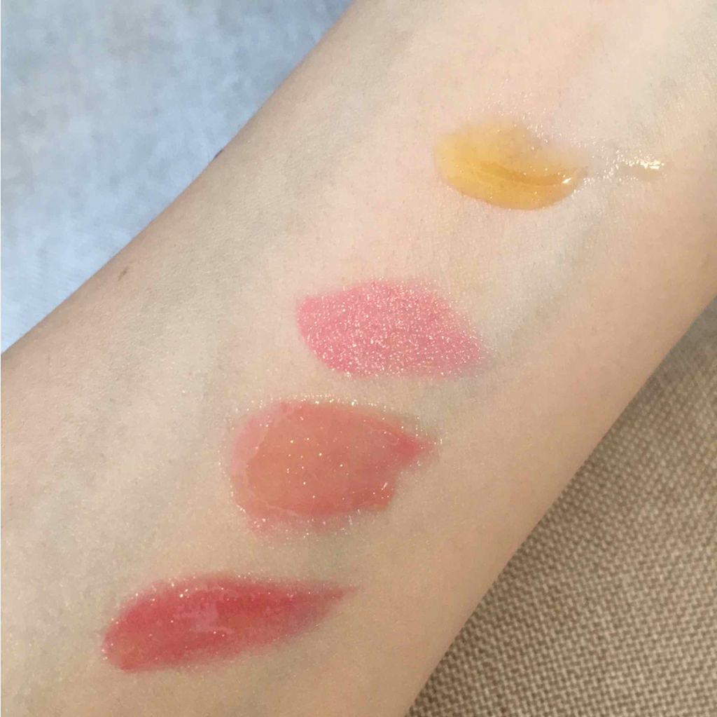- 果実のジュレみたいなみずみずしい透け感のあるオイルリップです。唇にのせると、ジュレがとろけるように膜を作って唇をしっとりと包み込みます。オイルなのにベタつきにくく、唇の縦じわを目立ちにくくします。