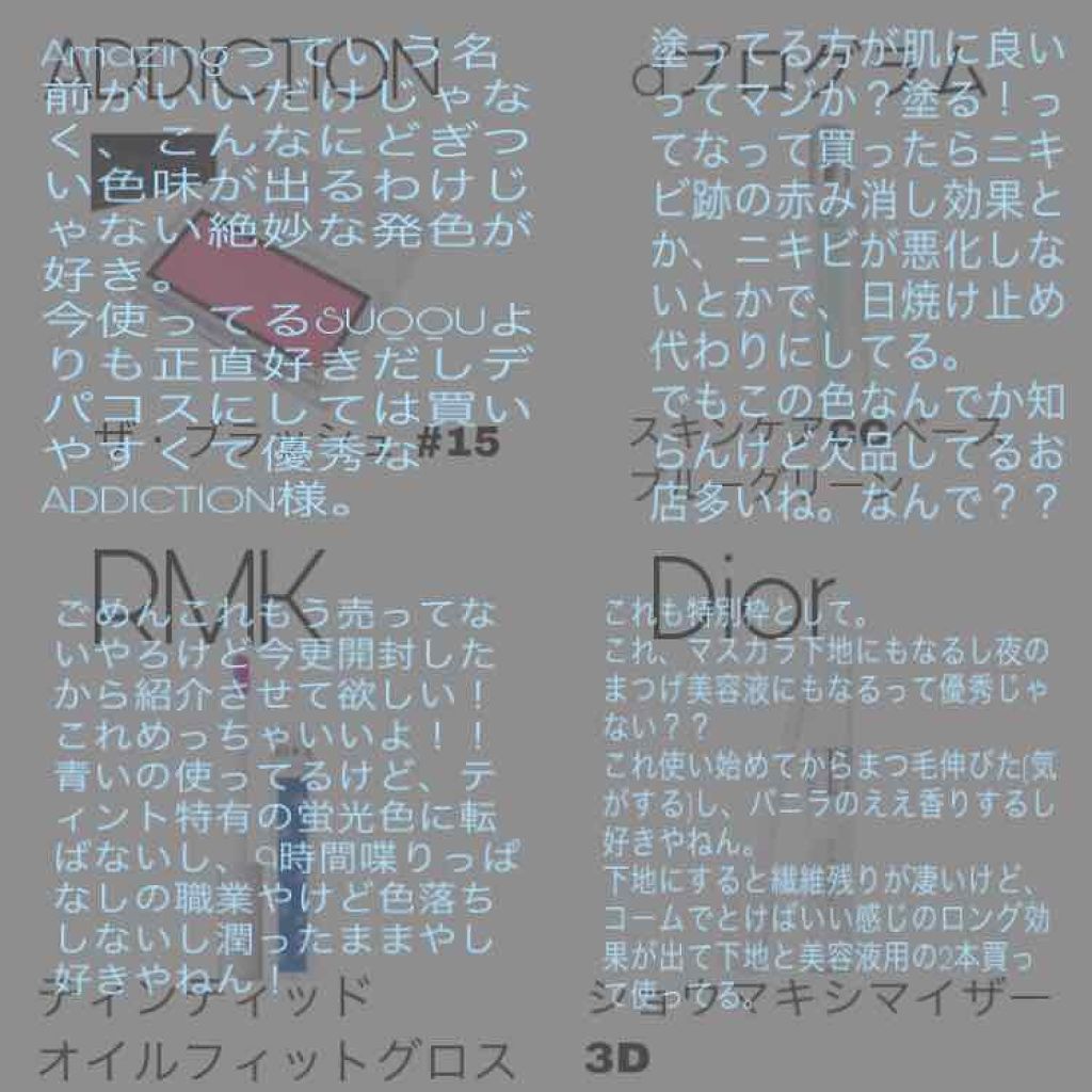| 口紅・グロス・リップライナーランキング第73位 | すごくサラサラしていて、べたつかないのでリップクリームみたいな感覚で使える♪ | 詳細を見る |