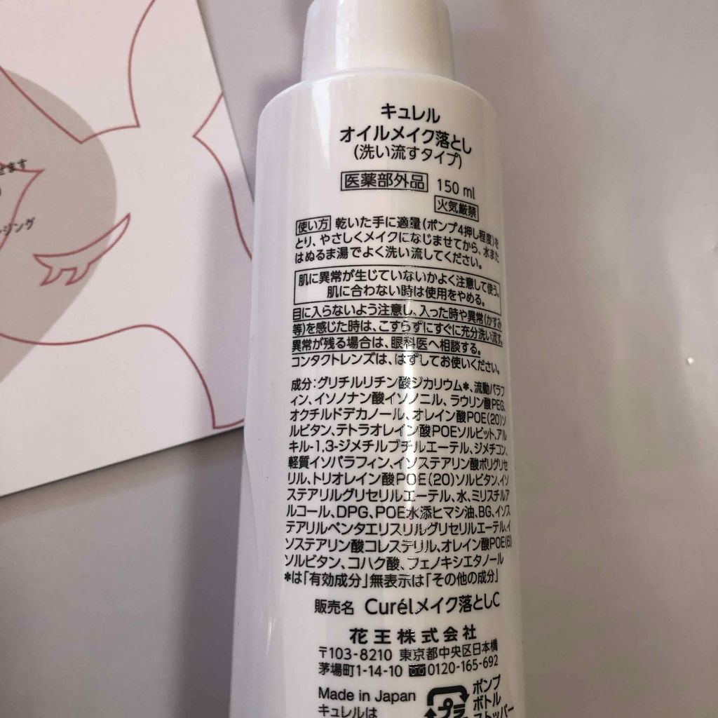 キュレルオイルメイク落とし〜商品説明〜肌の必須成分「セラミド」を守って洗い、肌荒れしにくい潤い肌に保つ落ちにくいメイクにも素早くなじみ、肌をこすらずに簡単に落とせるウォータープルーフマスカラもすっきり洗い上がりの乾燥を防いでしっとり重ため厚め...