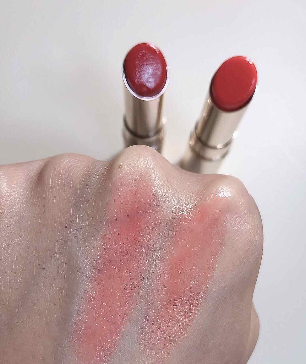 今まで何種類もリップを使ってきましたが、1番お気に入りがこちらです! 色はシアーなオレンジ味を感じるレッドで、落ちにくく、鏡を見なくてもキレイに塗り直せるところが気に入っています! 柔らかくとろける塗りごごちでとても塗りやすいです!