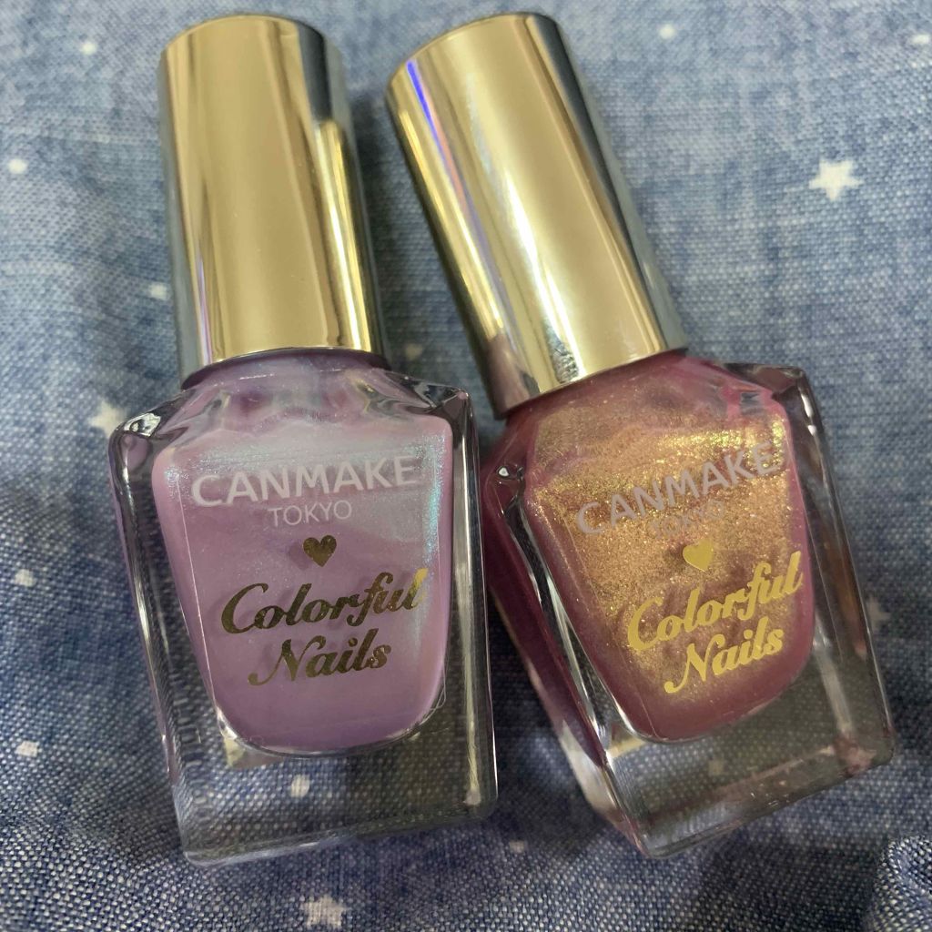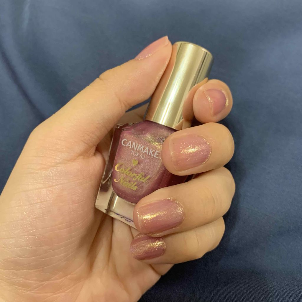 透け感のあるカシスカラーにたっぷりぎっしりのゴールドラメ ひと塗りするだけで華やかな指先に🥺 キャンメイクのカラフルネイルズは安い、塗りやすい、速乾、カラバリ豊富なのでお気に入りです🤟
