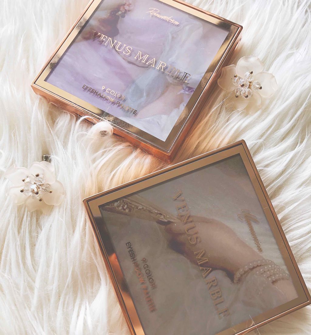 VenusMarbleVenusMarble9色アイシャドウパレットRomanticismパケからもう綺麗で素敵ー❣️今回は、右側中心のブラウン系でまとめました❣️左上のブルーは、涙袋、黒目上につけましたが、ブラウンの発色に負けました🤣次回は...