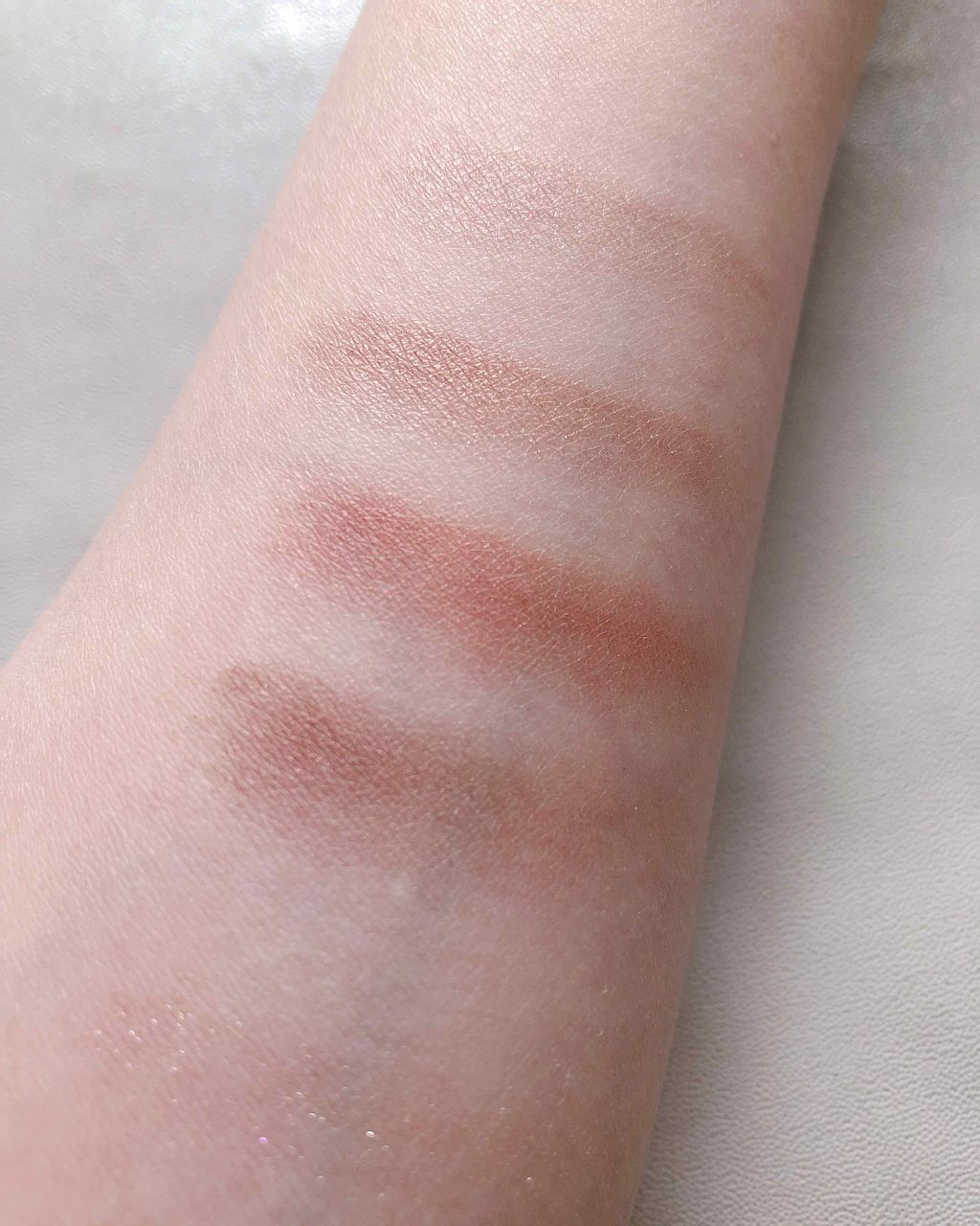 深みのあるくすみ系カラーが魅力の5色入りアイシャドウパレット。1つで2つの異なるメイクスタイルを楽しめるのが特徴で、スモーキーで落ち着いたトーンの色味が揃っています。 ラメは華やかだけど控えめで、普段使いにも特別な場面にも合わせやすいです。 粉質はしっとりしていてまぶたに密着しやすいです。プチプラながら発色も良く、コスパの高さがとにかく嬉しい♪