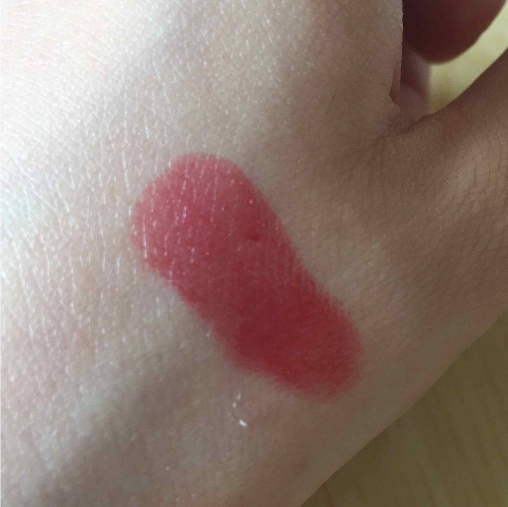 高発色なカラーです。 血色感も増しそうなお色☆ 付けた瞬間からじゅわっと潤いが溶け出してくる感じがイイ♪ うるツヤな唇に(♡∀♡) ただ、ツヤ感はこすったりするとなくなりがち