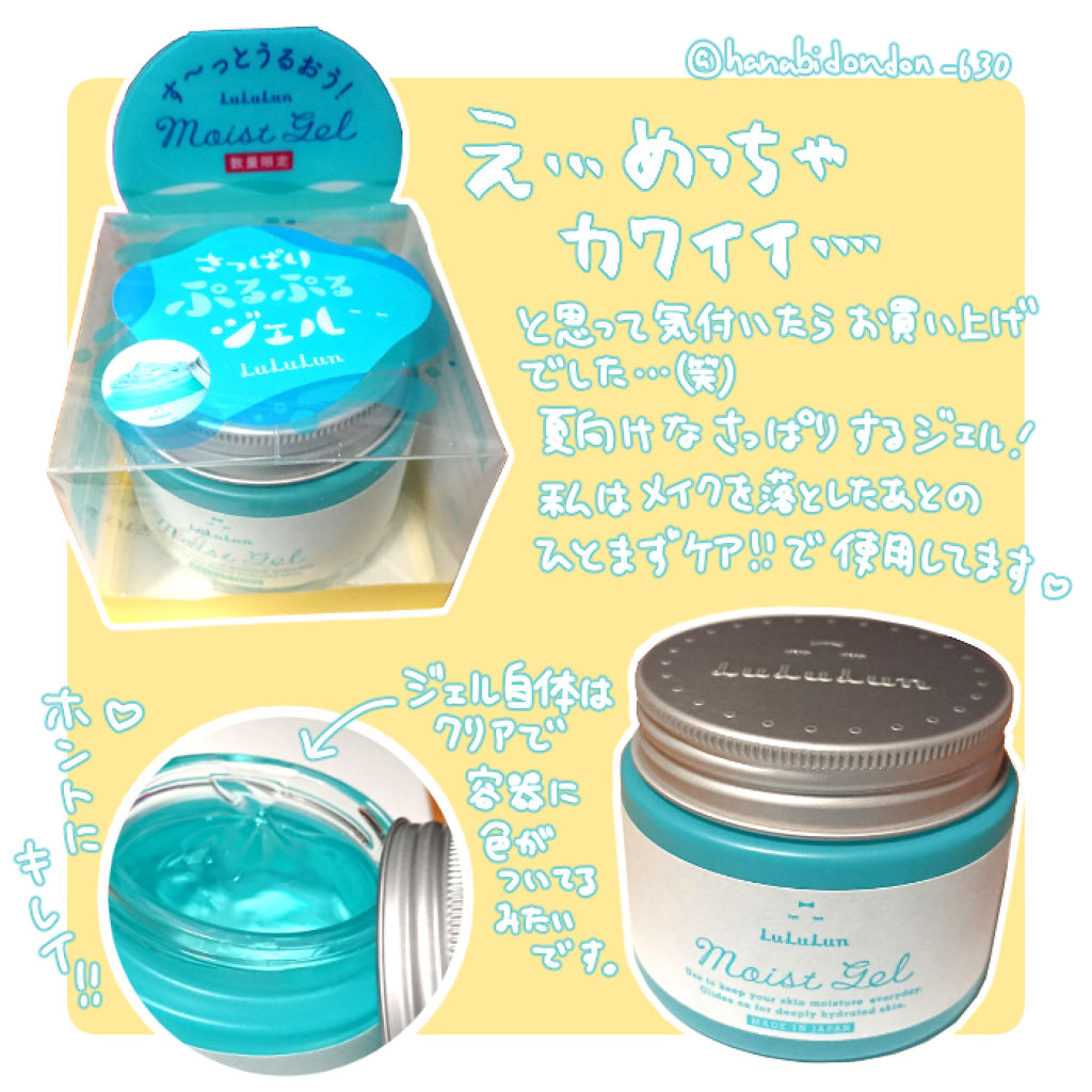 【2018SUMMER】ルルルンモイストジェル〈さっぱり保湿タイプ〉80g使い方1,洗顔後、フェイスマスクや化粧水をする。2,ジェルをのばしてなじませる。1回の使用料はパール2つ分なのでコスパも◎数量限定で白のルルルン(7枚入)もついてる😊ま...