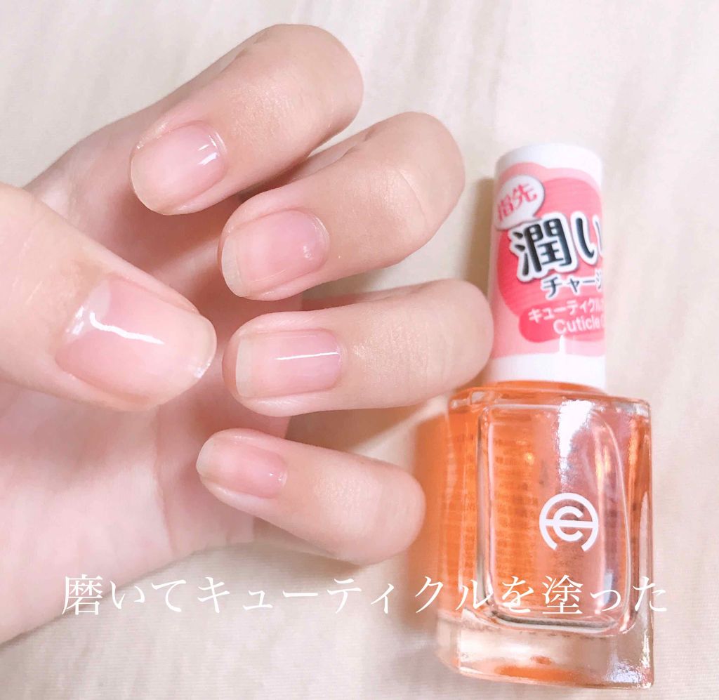 - 指先にうるおいを与え、ネイルカラーなどの持ちを良くするキューティクルオイル。 ハンドクリームでのケアに加えると、爪の割れや二枚爪などのトラブル軽減にもつながります。 甘酸っぱいアップルの香り。