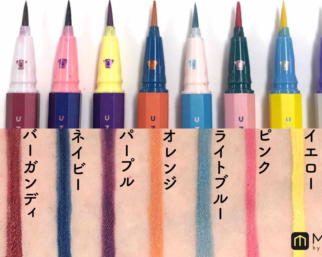 UZUのアイライナーオススメの色♡大人気のアイライナー、どの色買おうか悩みますよね。スウォッチは加工なしの太陽光で撮りました。曇りの日だったので画像暗くてごめんなさい。すこしでも参考になればわ嬉しいです💄ブラウンは普段メイクに1番オススメ。黒...