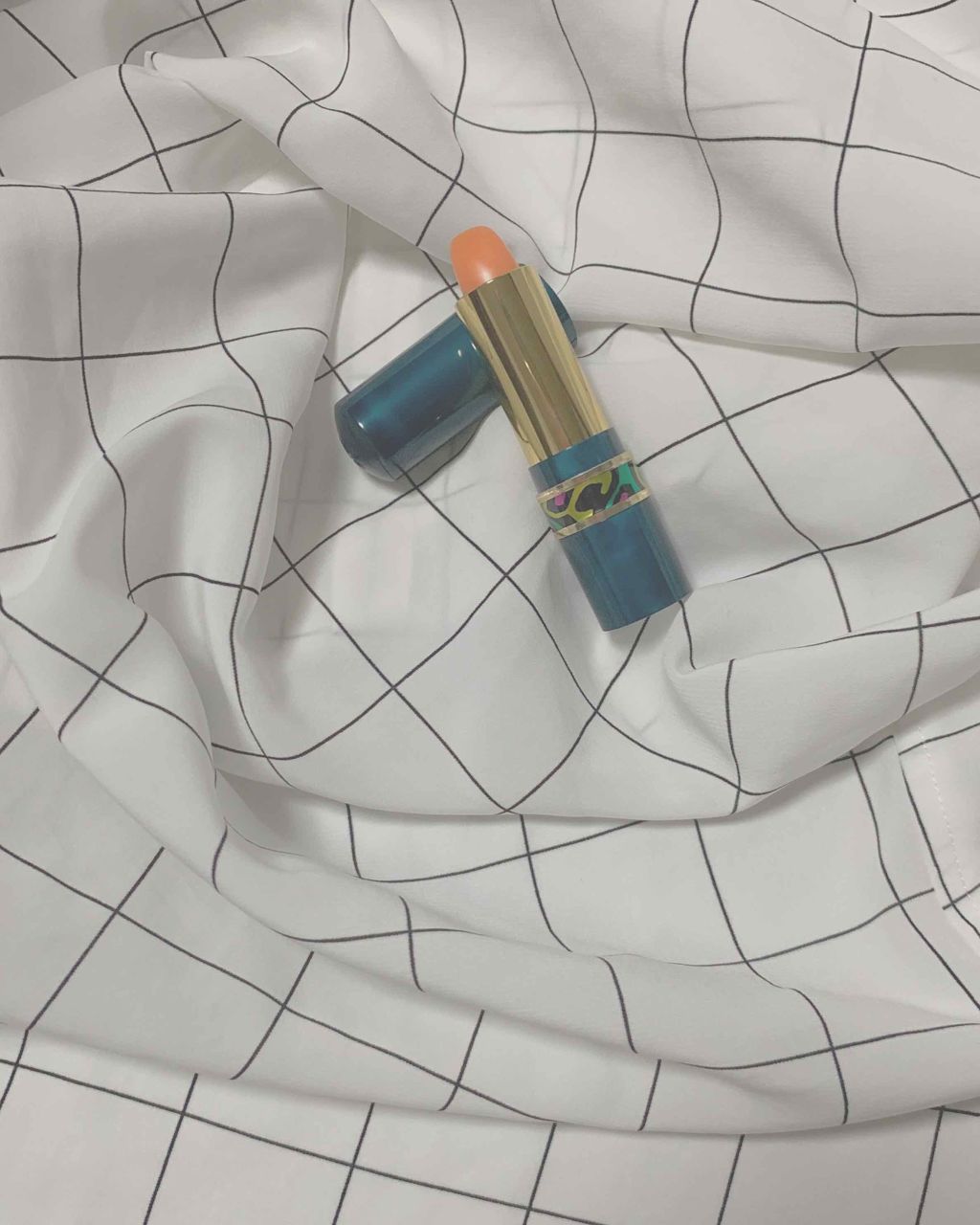 - オレンジ色の外観色が、塗布後ピンク~赤味になり、色がながもちする口紅です。