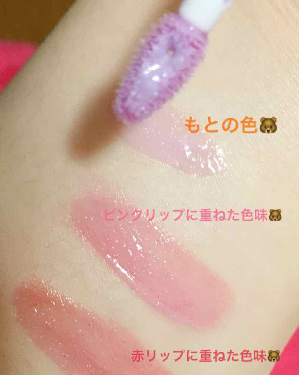 塗ると紫から青みピンクに変わります。 ピンクラメが入っていて可愛いです♡ 匂いはおもちゃのコスメみたいな感じで臭いです、、 #韓国コスメ#エチュード#リップ#プチプラ#プチプラリップ #プチプラコスメ#ティント