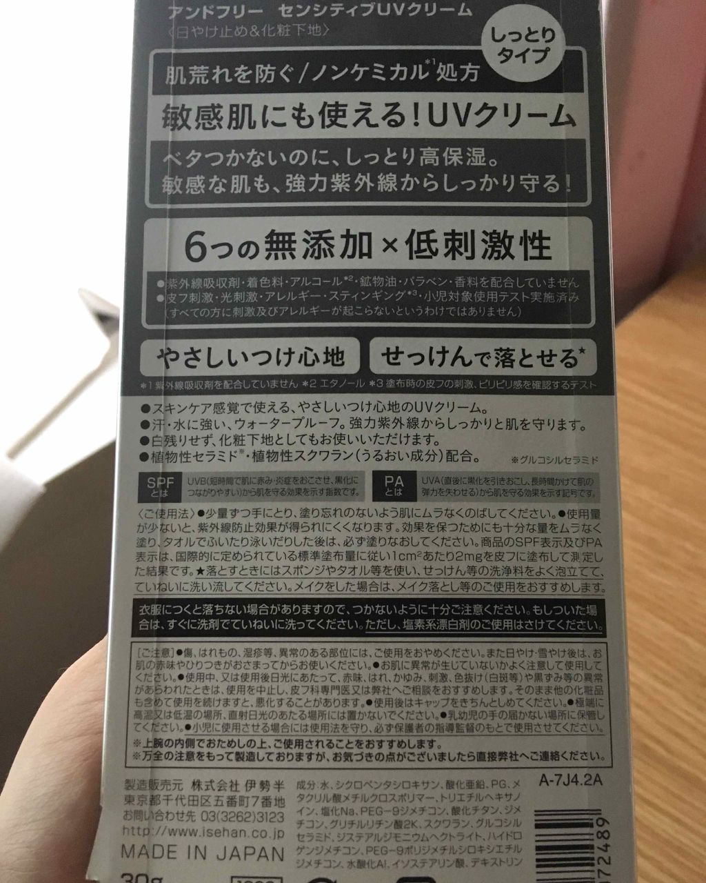 このUVウォータリージェル 50+は、毎年夏限定で販売している製品です。 SPF,PA値は50++++と夏の使用を想定した仕様になっています。 色味や香りについて。容器から出した直後は乳白色で、塗り広げると透明になります。 この日焼け止めにはヒアルロン酸やコラーゲンなどの美容成分、ホホバオイルをはじめとするオーガニック保湿成分が配合されています。 ジェルタイプの為か、一回の消費量が多かったです。