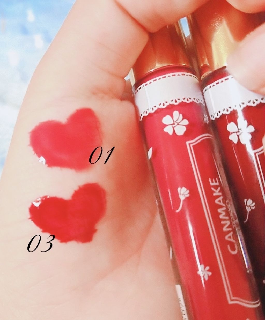 新しく購入したセリアオイルインリップ03ピュアレッドこれが可愛すぎた!愛用している03番のコーラルピンク百均だから蓋が壊れちゃった.......😭コーラルピンクが可愛かったのでそれを買いに行こうとしたら、03番のピュアレッドが目について👀色残...