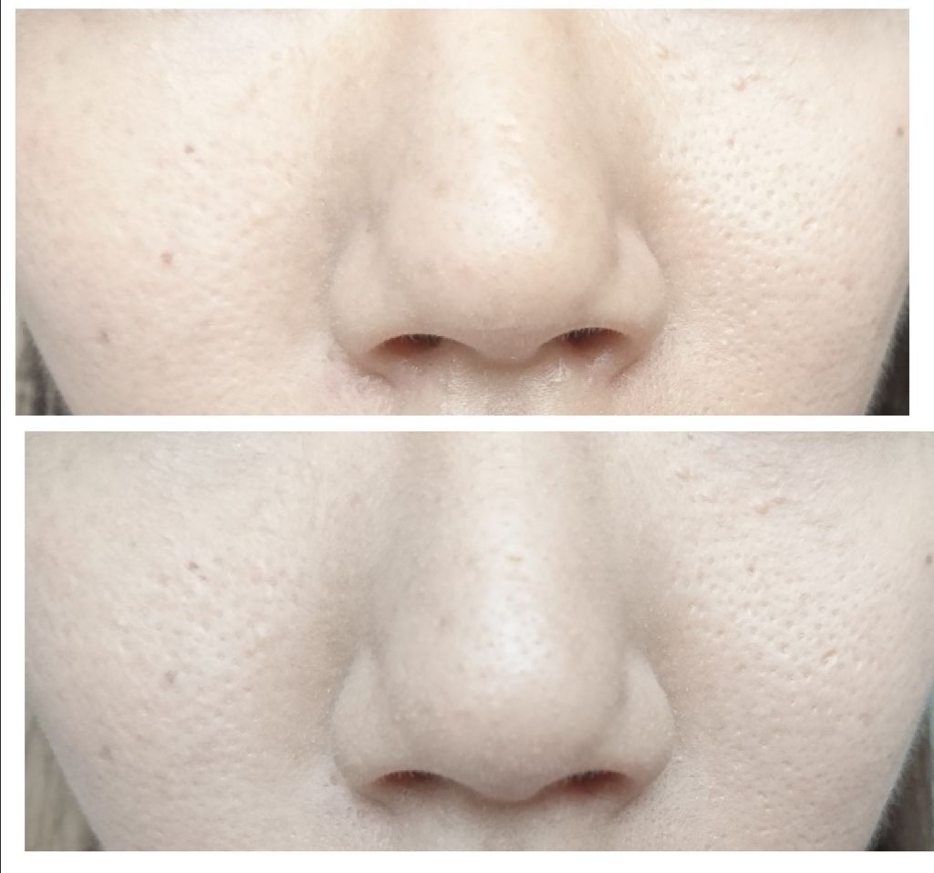 結論〰️〰️〰️〰️〰️〰️〰️〰️〰️〰️〰️〰️〰️〰️〰️〰️試しに顔の半分だけ塗ってみましたが、毛穴は少しだけ目立たなくなるくらいです。(写真2枚目)コラーゲンが入っているためか、乾燥は気にならないので普通に下地として使っています。実...