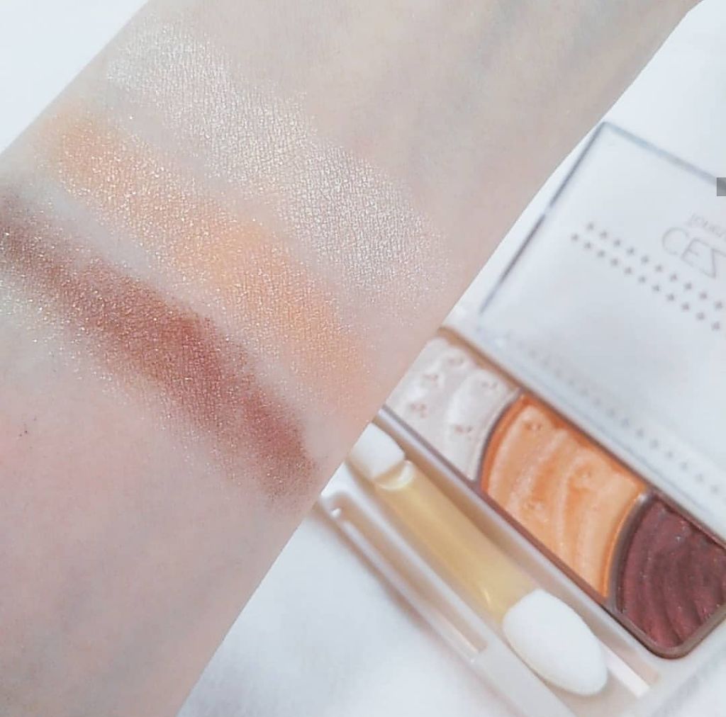 - 3色で簡単に明るく大きな目元に。 しっとり感触のアイシャドウ。 くすみを飛ばす明るさベース、ひとえ・奥二重の方でも幅広く塗れる肌なじみの良い中間色、 濃密高発色の締め色が目の輪郭を強調し大きな目元に。 微細パール配合でくすみを飛ばし、明るい目元へ。