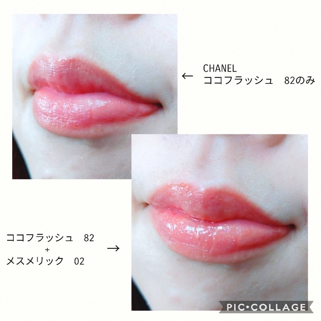 CHICCA/メスメリックグラスリップオイル/NO.02サンシャインラブ3200円(税抜き)手前(下段):たっぷり乗せて伸ばしてない状態奥(上段):伸ばしたもの「キッカがなくなる前に、一度はメスメリックのリップスティックを使ってみたい!」と駆...