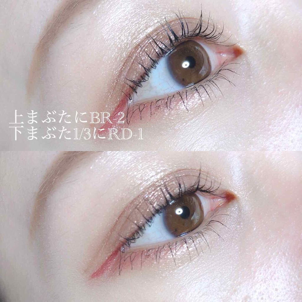 よくパレットのなかで明るいカラーをベースにまぶたに広く塗ることが多いのですが、パール感のあるカラーを避ける🙆♀️! パール感たっぷりの明るいカラーは涙袋に使うぐらい光を集めてぷっくり見せてくれるので、まぶたに広く使うと腫れぼったく見えがち😓 目元を明るくみせてくれたり、次に使うアイシャドウをぼかしやすくしてくれるけど、すっ飛ばしてメインのカラーを塗っちゃう✊🏻❤️🔥 涙袋にはたっぷり塗ってぷっくり見せる🙆♀️💕 シルキースフレアイズのマットタイプはすごく優れているな〜と感じました☺️💗 赤やオレンジなどは、入れすぎると腫れぼったく見えやすいので、見せたいカラーは下まぶた目尻にのせて色をたのしむ♡♡ パール感なしの透けマットだけじゃ物足りない… そう感じさせない華やかなラメが左上に入っているので黒目上と涙袋にのせるとすごく可愛い仕上がりに😍! 厄介な左右差のお陰でマットアイシャドウが好きになりました😌💕