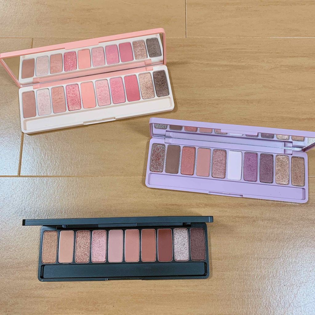- 肌なじみの良い、鮮やかな発色で目元を華やかに彩る捨て色なしの10色アイシャドウパレット 異なる3種のテクスチャーを自由に組み合わせて、グラデーションも思いのままに。 NEW 2023.4 ・肌トーンにあう配色を詰め込んだトレンドカラー 肌トーンに合わせて、自分に似合うトレンドカラーが楽しめる♡ パーソナルカラー×トレンドカラーの掛け合わせパレットで、デイリーメイクもスペシャルメイクも気分にあわせてなりたい自分に! ・むにゅっとジェル質感ラメで高密着、煌めく目元 パレットの中でもポイントとなる大きめ粒子のラメは、ジェルのような新質感で落ちにくく肌にぴったりと密着します。キラキラとした目元をキープします。 ・使うカラーは大きめに!リアル捨て色なしパレット ベースやラメのよく使うカラーと締め色や濃い色等の減りが少ないカラーを異なるサイズで詰め込んだ、リアル捨て色なしパレット! <使用方法> 付属のデュアルシャドウブラシでベースカラーをまぶた全体に塗り広げます。細いブラシでグラデーションや目尻、アイライン、涙袋などのポイントカラーをのせて仕上げます。