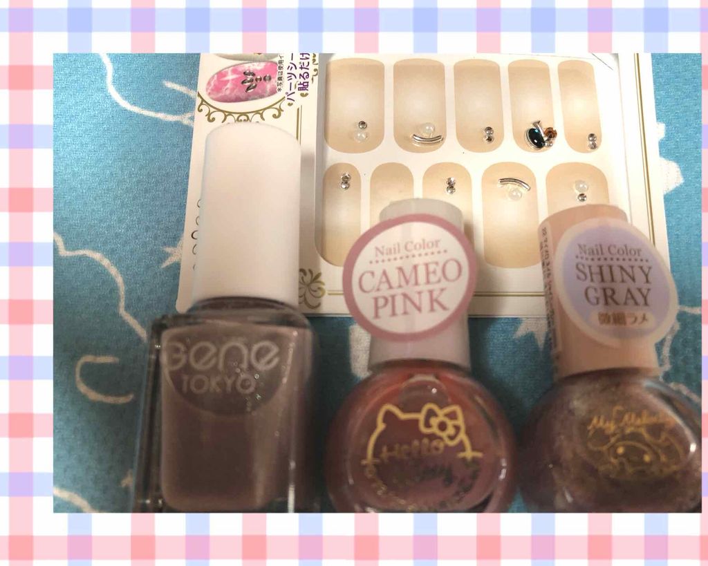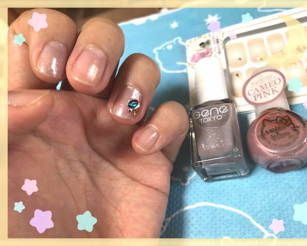 いい感じに出来た!セリアのネイルパーツやっぱ可愛い!初めてシール貼ったけど、ハマりそう(°ω°)GENEネイルのデニムブルーを活かしたくて!あと、サンリオネイルのモカとトープの色の違いを見比べたくて。親指がモカで、中指と薬指が、トープです!違...