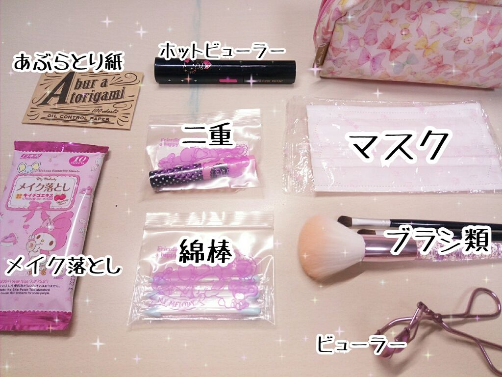 カバンは量産型の方がよく持ってるメゾンドフルールのダブルリボントートを持って行ってます!あと1つ小さめなリュックや、ショルダーバッグ?を持つときもあります。