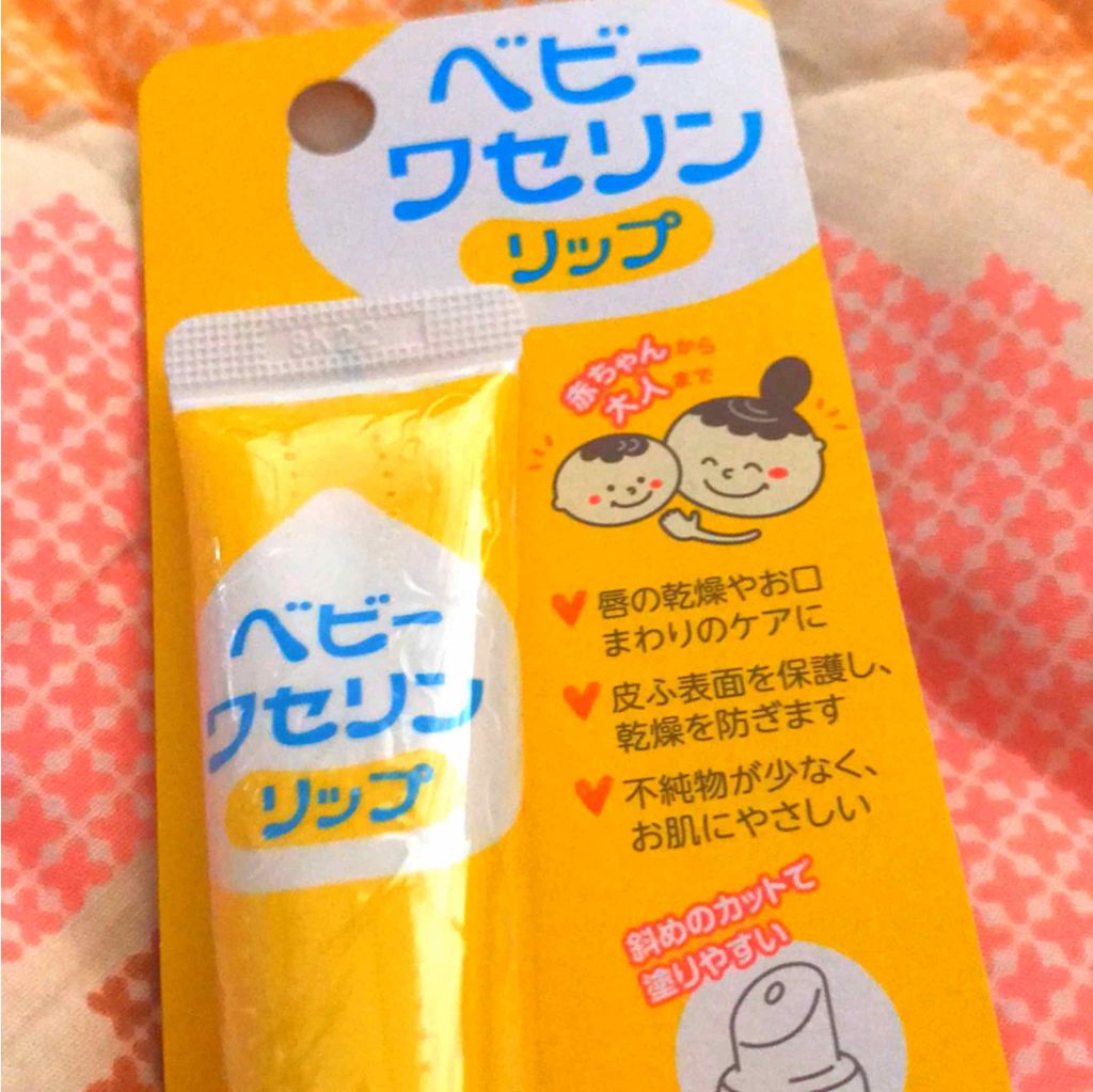 - 子供から大人まで安心&手軽に使える「ベビーワセリンリップ」 ベビーワセリンは、酸処理を伴わない精製方法を採用しており無香料、無着色、パラベンフリーの商品です。従来のワセリンと比べ、無添加で不純物が少なく、やわらかくて伸びがよいため赤ちゃんから大人まで安心してご利用頂けます。本商品は、チューブタイプで先端が斜めにカットされているため、リップとして便利なタイプです。