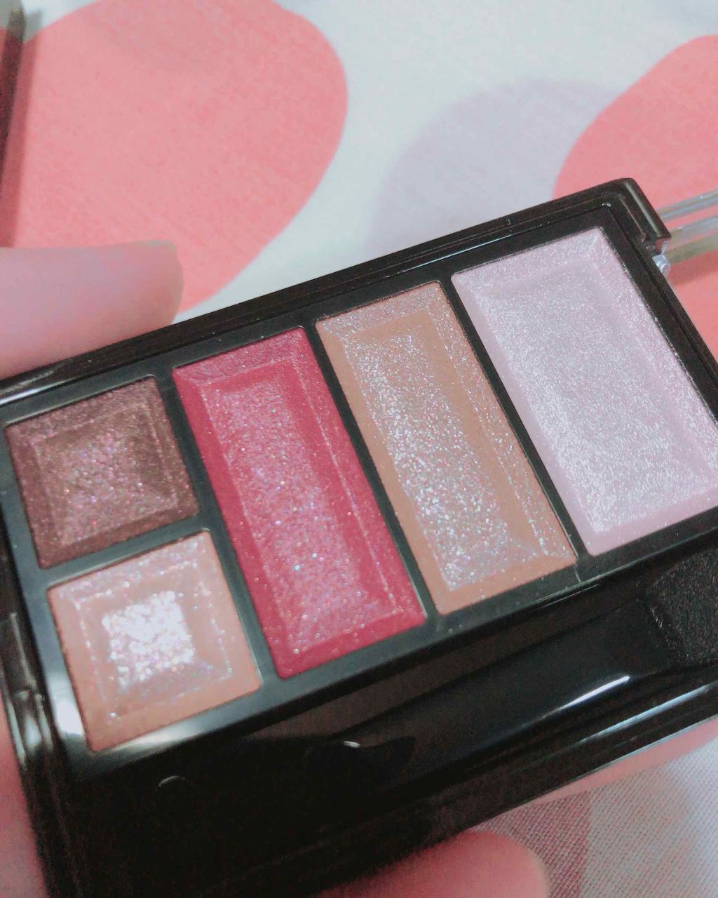 △マキアージュ ドラマティックスタイリングアイズ△ラズベリーモカ△ふたつめ!△色の配置が完璧✨△普通のブラウンに合わないんだがこれは似合う🙆🏻♀️△キラキラが最高😌△1番右の締めの色味最高に綺麗🥰...