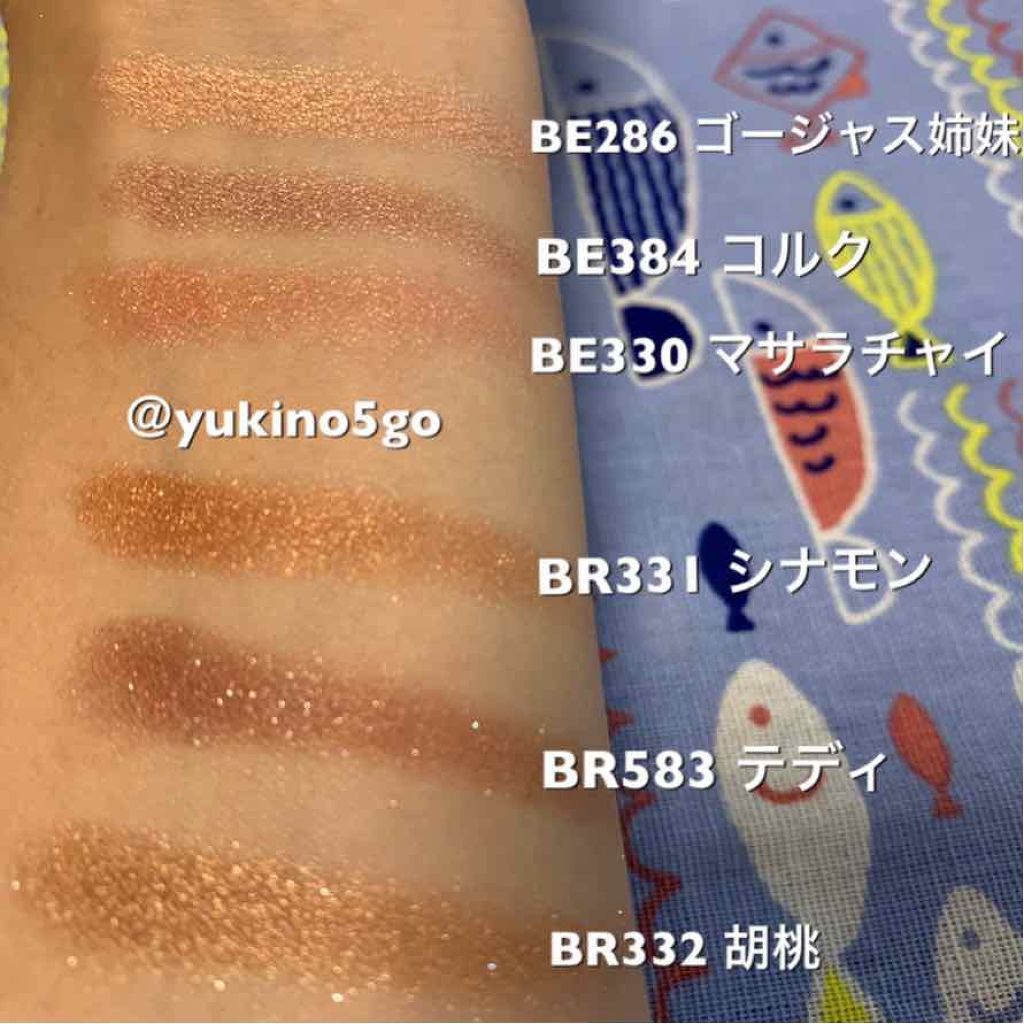 - <BE121 恋の達人> タルク、ワセリン、ジメチコン、セスキイソステアリン酸ソルビタン、ポリメタクリル酸メチル、ミネラルオイル、テトラヒドロテトラメチルシクロテトラシロキサン、テトラデセン、トコフェロール、エチルパラベン、(+/-)マイカ、酸化チタン、酸化鉄、合成金雲母、赤226、黄401、青404 <BE203 綿菓子> タルク、リンゴ酸ジイソステアリル、焼成セリサイト、トリエチルヘキサノイン、ワセリン、セスキイソステアリン酸ソルビタン、酸化亜鉛、ミリスチン酸亜鉛、エチルヘキシルグリセリン、ハイドロゲンジメチコン、酸化スズ、トリエトキシカプリリルシラン、トコフェロール、水酸化Al、テトラヒドロテトラメチルシクロテトラシロキサン、テトラデセン、クロルフェネシン、マイカ、合成金雲母、酸化チタン、酸化鉄 <BE286 ゴージャス姉妹> タルク、リンゴ酸ジイソステアリル、トリオクタノイン、セスキイソステアリン酸ソルビタン、ミリスチン酸亜鉛、シリカ、トコフェロール、テトラヒドロテトラメチルシクロテトラシロキサン、テトラデセン、エチルパラベン、マイカ、酸化チタン、酸化鉄、グンジョウ、酸化亜鉛、赤226 <BE330 マサラチャイ> タルク、リンゴ酸ジイソステアリル、メタクリル酸メチルクロスポリマー、トリエチルヘキサノイン、ワセリン、ミリスチン酸亜鉛、酸化亜鉛、セスキイソステアリン酸ソルビタン、エチルヘキシルグリセリン、アルミナ、酸化スズ、トコフェロール、テトラヒドロテトラメチルシクロテトラシロキサン、テトラデセン、クロルフェネシン、マイカ、酸化チタン、酸化鉄、合成金雲母、グンジョウ、赤226 <BE384 コルク> タルク、ワセリン、トリエチルヘキサノイン、ジメチコン、酸化亜鉛、セスキイソステアリン酸ソルビタン、メタクリル酸メチルクロスポリマー、ミリスチン酸亜鉛、エチルヘキシルグリセリン、酸化スズ、トリエトキシカプリリルシラン、トコフェロール、クロルフェネシン、マイカ、酸化鉄、酸化チタン、合成金雲母、グンジョウ <BK922 黒蜥蜴> タルク、リンゴ酸ジイソステアリル、トリエチルヘキサノイン、ワセリン、酸化亜鉛、セスキイソステアリン酸ソルビタン、ミリスチン酸亜鉛、エチルヘキシルグリセリン、テトラヒドロテトラメチルシクロテトラシロキサン、テトラデセン、トコフェロール、クロルフェネシン、マイカ、酸化鉄、合成金雲母、酸化チタン、コンジョウ、グンジョウ <BR331 シナモン> タルク、リンゴ酸ジイソステアリル、メタクリル酸メチルクロスポリマー、トリエチルヘキサノイン、ワセリン、セスキイソステアリン酸ソルビタン、酸化亜鉛、ミリスチン酸亜鉛、エチルヘキシルグリセリン、酸化スズ、テトラヒドロテトラメチルシクロテトラシロキサン、トコフェロール、テトラデセン、クロルフェネシン、マイカ、酸化鉄、合成金雲母、酸化チタン <BR332 胡桃> タルク、リンゴ酸ジイソステアリル、メタクリル酸メチルクロスポリマー、トリエチルヘキサノイン、ワセリン、酸化亜鉛、ミリスチン酸亜鉛、セスキイソステアリン酸ソルビタン、エチルヘキシルグリセリン、酸化スズ、トコフェロール、テトラヒドロテトラメチルシクロテトラシロキサン、テトラデセン、ヒドロキシプロピルセルロース、クロルフェネシン、マイカ、酸化チタン、酸化鉄、合成金雲母、コンジョウ <BR583 テディ> タルク、ワセリン、トリエチルヘキサノイン、シリカ、ジメチコン、酸化亜鉛、セスキイソステアリン酸ソルビタン、ミリスチン酸亜鉛、エチルヘキシルグリセリン、トリエトキシカプリリルシラン、酸化スズ、トコフェロール、クロルフェネシン、マイカ、酸化鉄、合成金雲母、グンジョウ、酸化チタン <BR703 コナ> タルク、リンゴ酸ジイソステアリル、焼成セリサイト、トリエチルヘキサノイン、ワセリン、ミリスチン酸亜鉛、酸化亜鉛、セスキイソステアリン酸ソルビタン、エチルヘキシルグリセリン、ハイドロゲンジメチコン、トリエトキシカプリリルシラン、酸化スズ、トコフェロール、クロルフェネシン、マイカ、合成金雲母、酸化鉄、酸化チタン、グンジョウ <GD822 ゴールデン> タルク、リンゴ酸ジイソステアリル、トリオクタノイン、セスキイソステアリン酸ソルビタン、トコフェロール、テトラヒドロテトラメチルシクロテトラシロキサン、テトラデセン、エチルパラベン、(+/-)マイカ、酸化鉄、酸化チタン、合成金雲母 <OR300 みちしるべ> タルク、リンゴ酸ジイソステアリル、メタクリル酸メチルクロスポリマー、トリエチルヘキサノイン、ワセリン、酸化亜鉛、ミリスチン酸亜鉛、セスキイソステアリン酸ソルビタン、エチルヘキシルグリセリン、ジメチコン、ハイドロゲンジメチコン、酸化スズ、トコフェロール、テトラヒドロテトラメチルシクロテトラシロキサン、ヒドロキシプロピルセルロース、テトラデセン、クロルフェネシン、マイカ、酸化チタン、酸化鉄、合成金雲母、黄4 <OR481 マリー> タルク、ワ