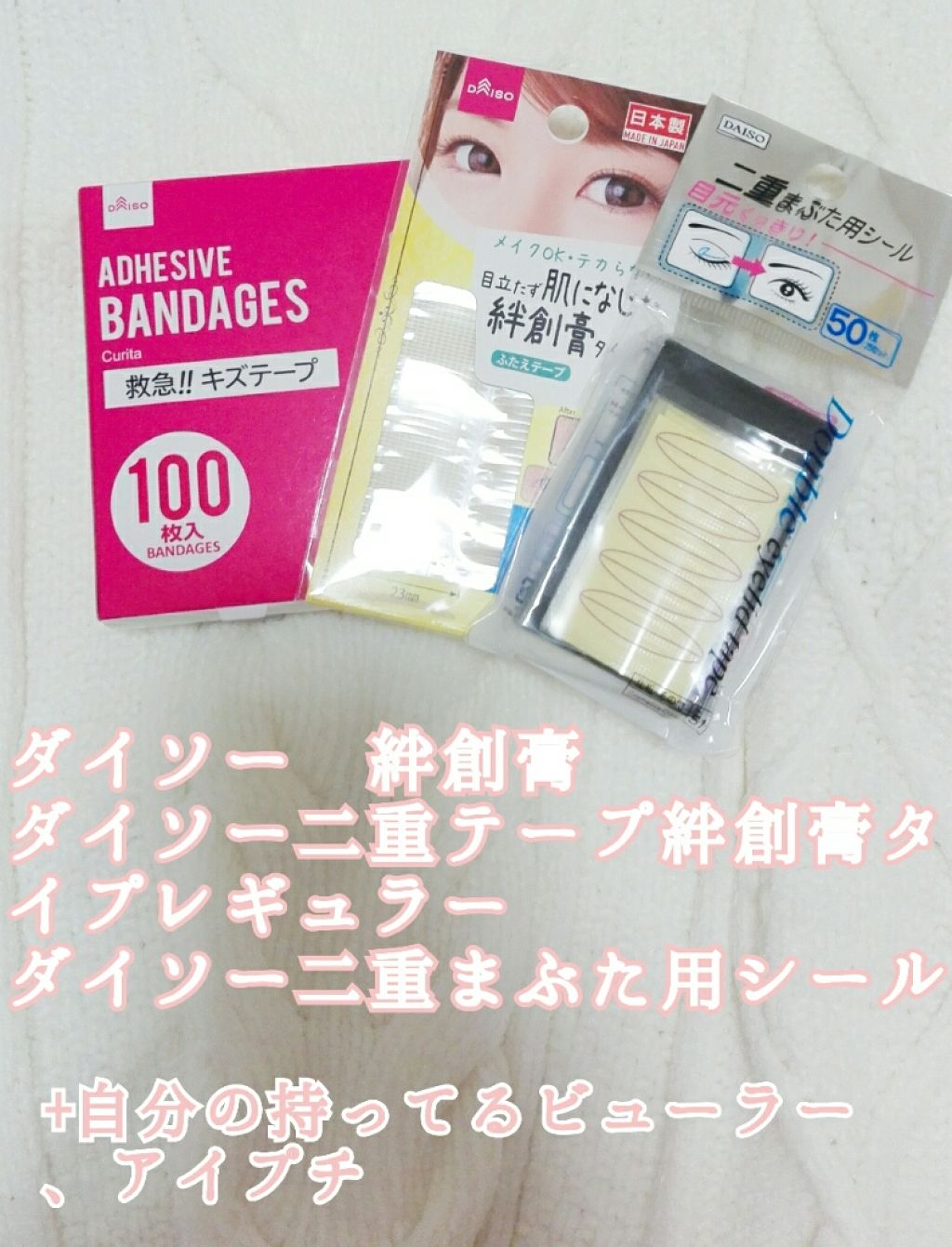 アイプチ苦手勢には厳しいかも…?DAISOアイテープ絆創膏タイプ、レギュラー、70枚レビューDAISOの大人気のび~るアイテープ絆創膏タイプ、レギュラー、70枚を購入しましたこれよく切って使ったりそのまま使ったりしてとても綺麗な二重が作れてい...