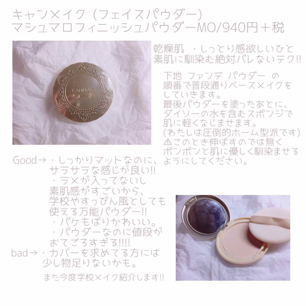 【使った商品】♡CANMAKE・マシュマロフィニッシュパウダーWminiMO【商品の特徴】♡大人気!キャンメイクのパウダーファンデーションです!【使用感】♡パウダーファンデーションなのでクリアパウダーと違いカバー力がきちんとあります!【良いと...