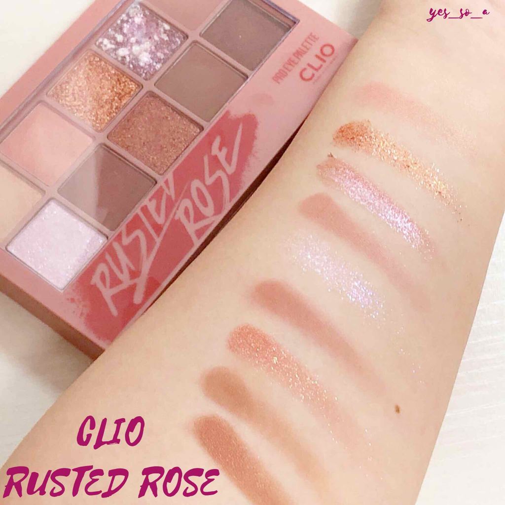 #CLIO#プロアイパレット#SIMPLYPINK#RUSTEDROSE比べてみたらこんな感じ💕2枚目に#スウォチあります!RUSTEDROSEの方が少々トーンダウンしてるけどラメが多い感じかな…🤔ラメの勝者はRUSTE...